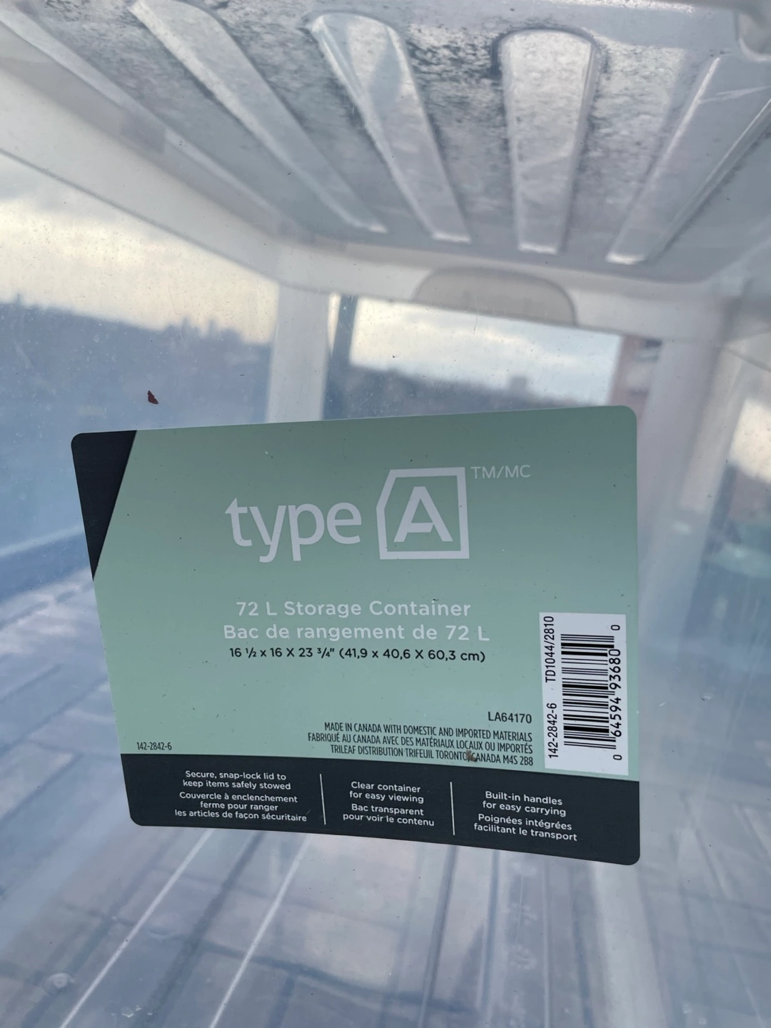 Buy & SellType A 72 L Storage ContainerType A 72 L Storage ContainerFreeClear storage container with lid, snap-lock lid to keep items secure, built-in handles for easy transport. There is a crack in the lid.ConditionGoodDimensions16.5 x 16 x 23.754 chats·1 favorites·78 viewsSELLERverifiedHoldenDavisville Village32723 reviewsWHERE TO MEETDavisville Village