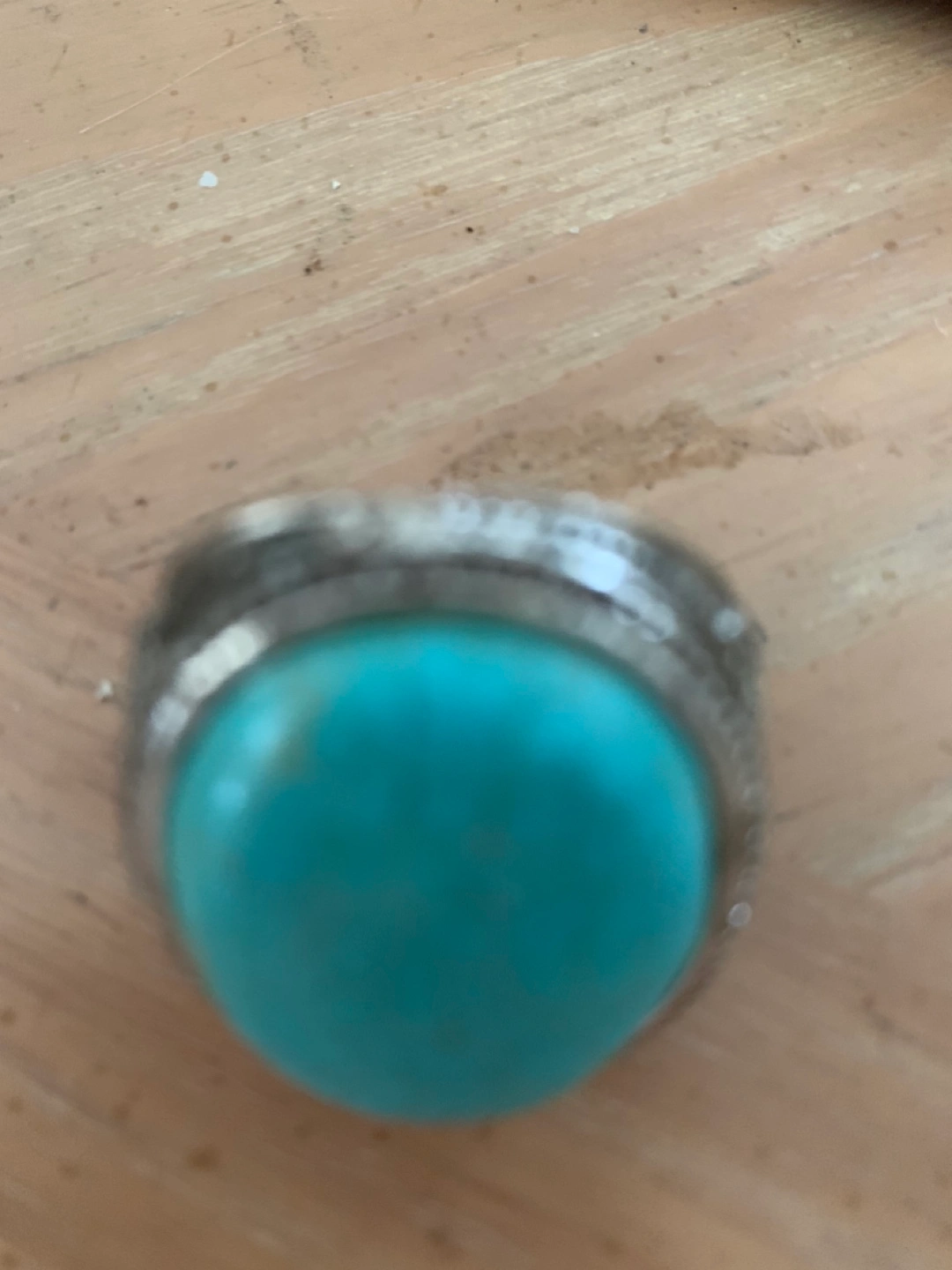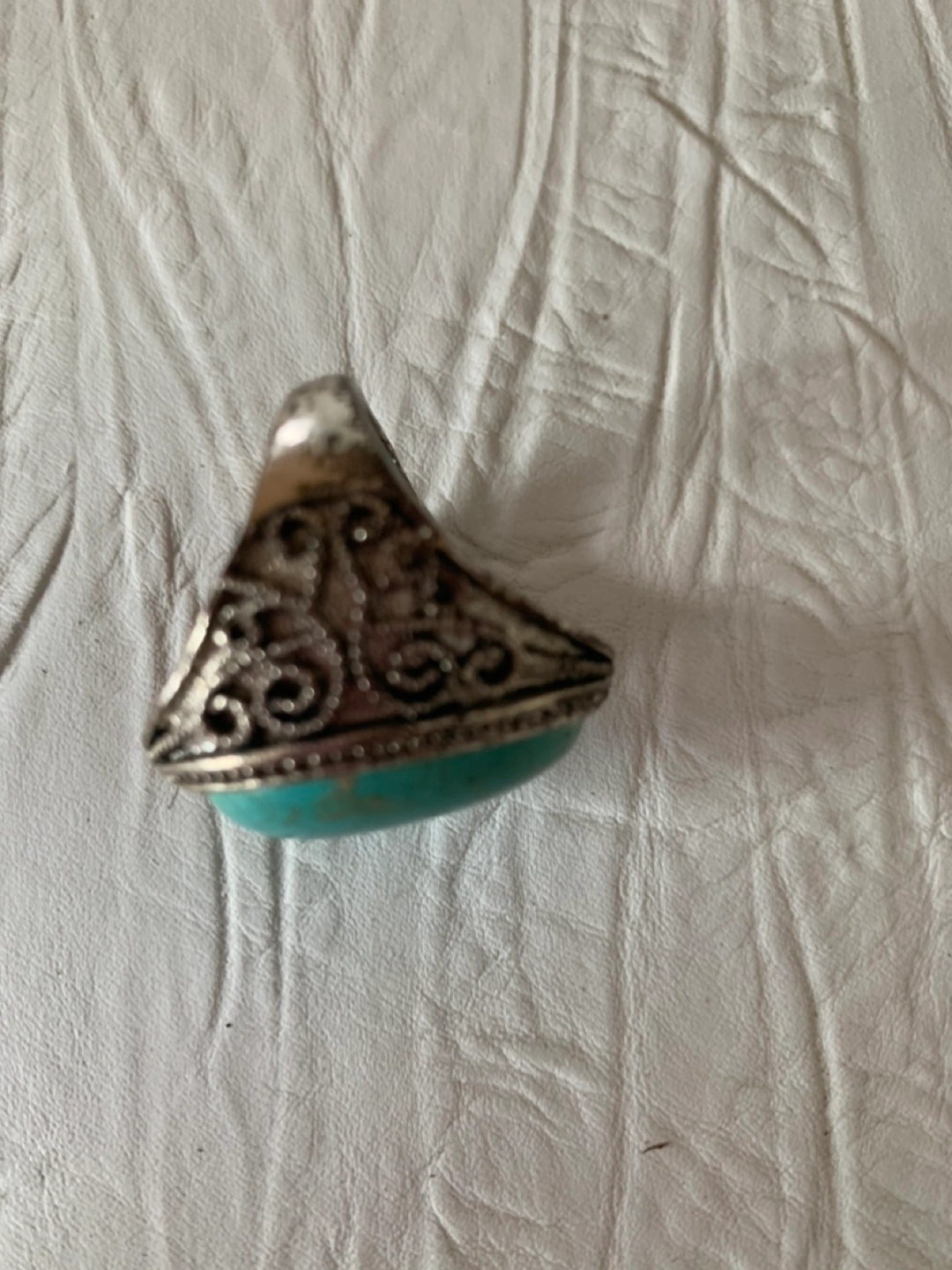 Silver looking ring with a fake turquoise stone. Size 8.5? / Trendy HUGE. ! / 💍