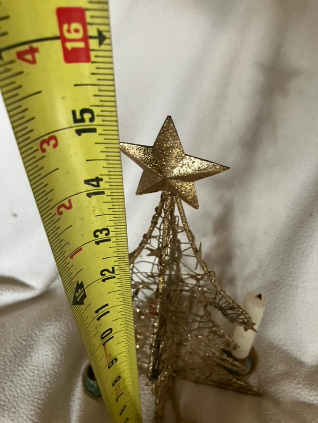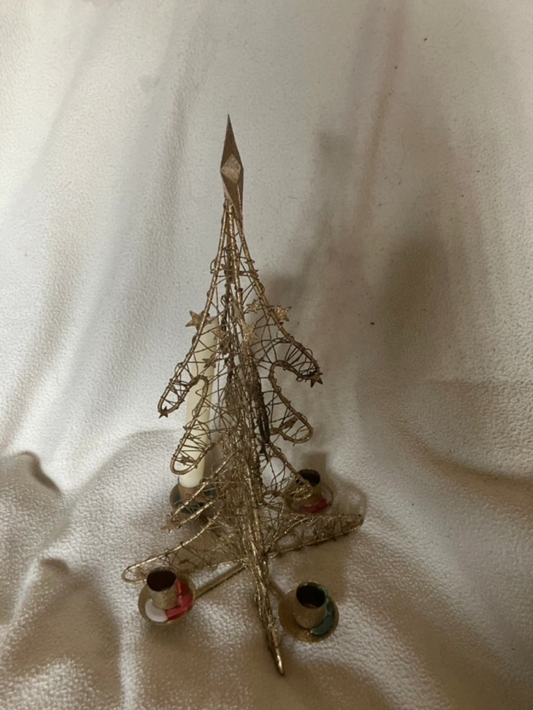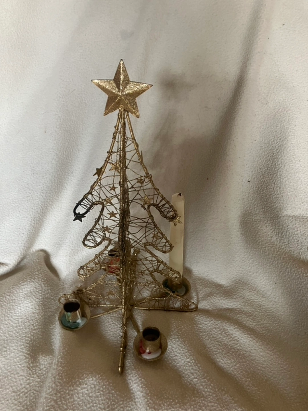 Gold wire Christmas tree candle holder. Has four candle holders (candles not included). Approximately 15 inches tall. **cash only, p/up in Thornhill, Yonge St south of Hwy 7/407