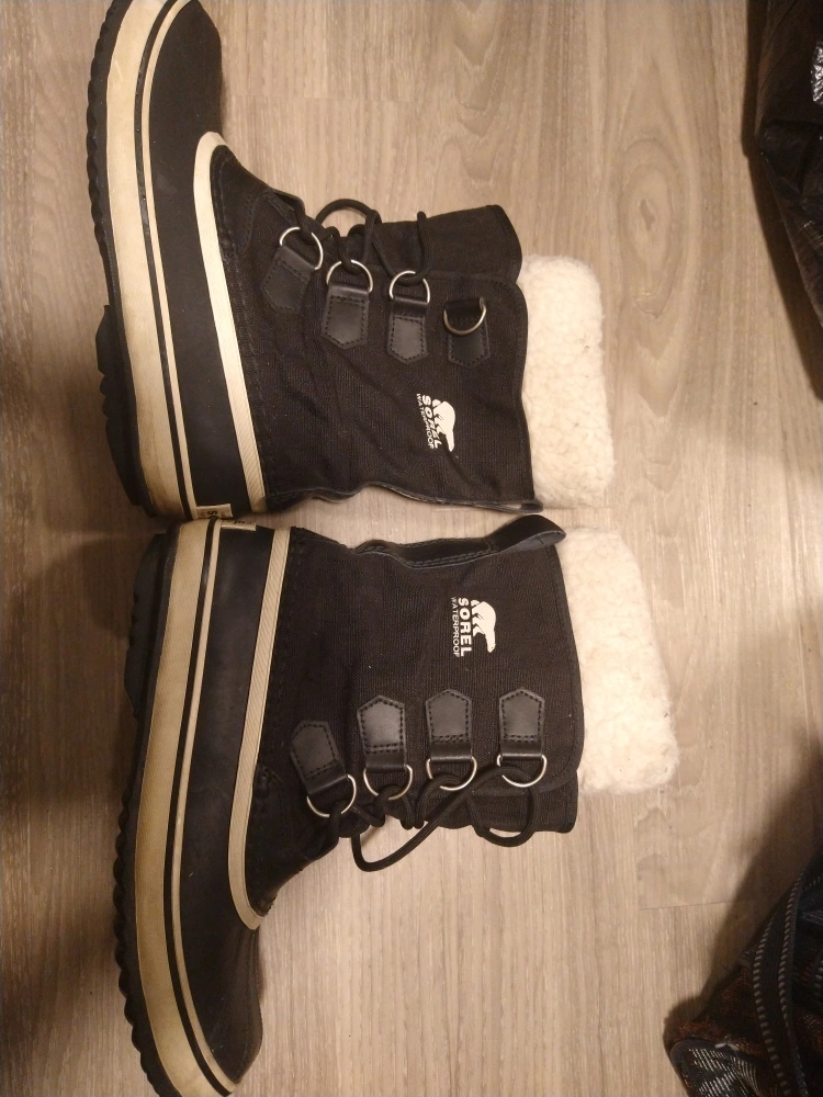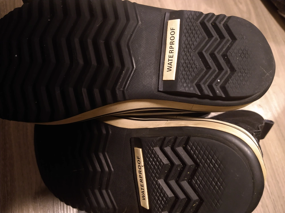 581Black winter boots with a white stripe. Waterproof.
