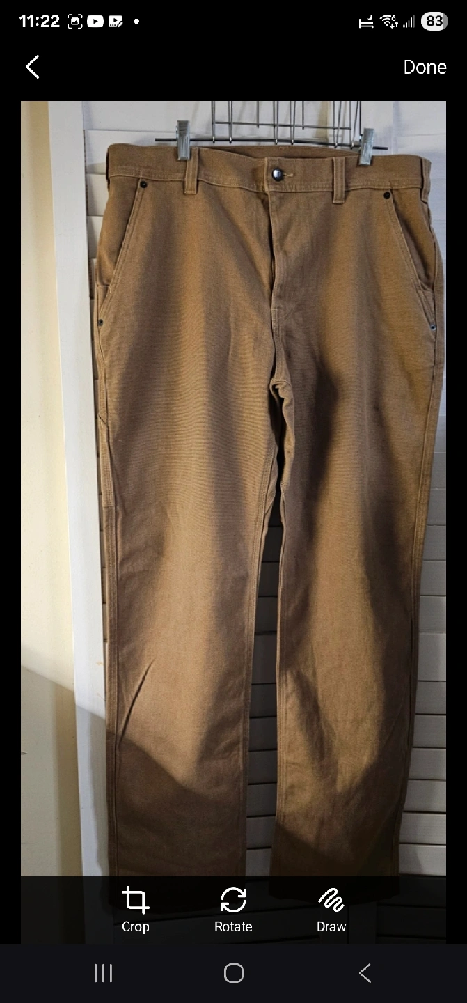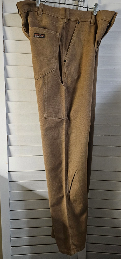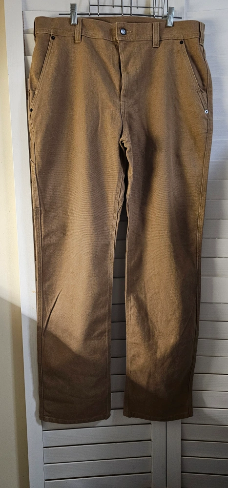 Brown workwear pants. Straight leg style.