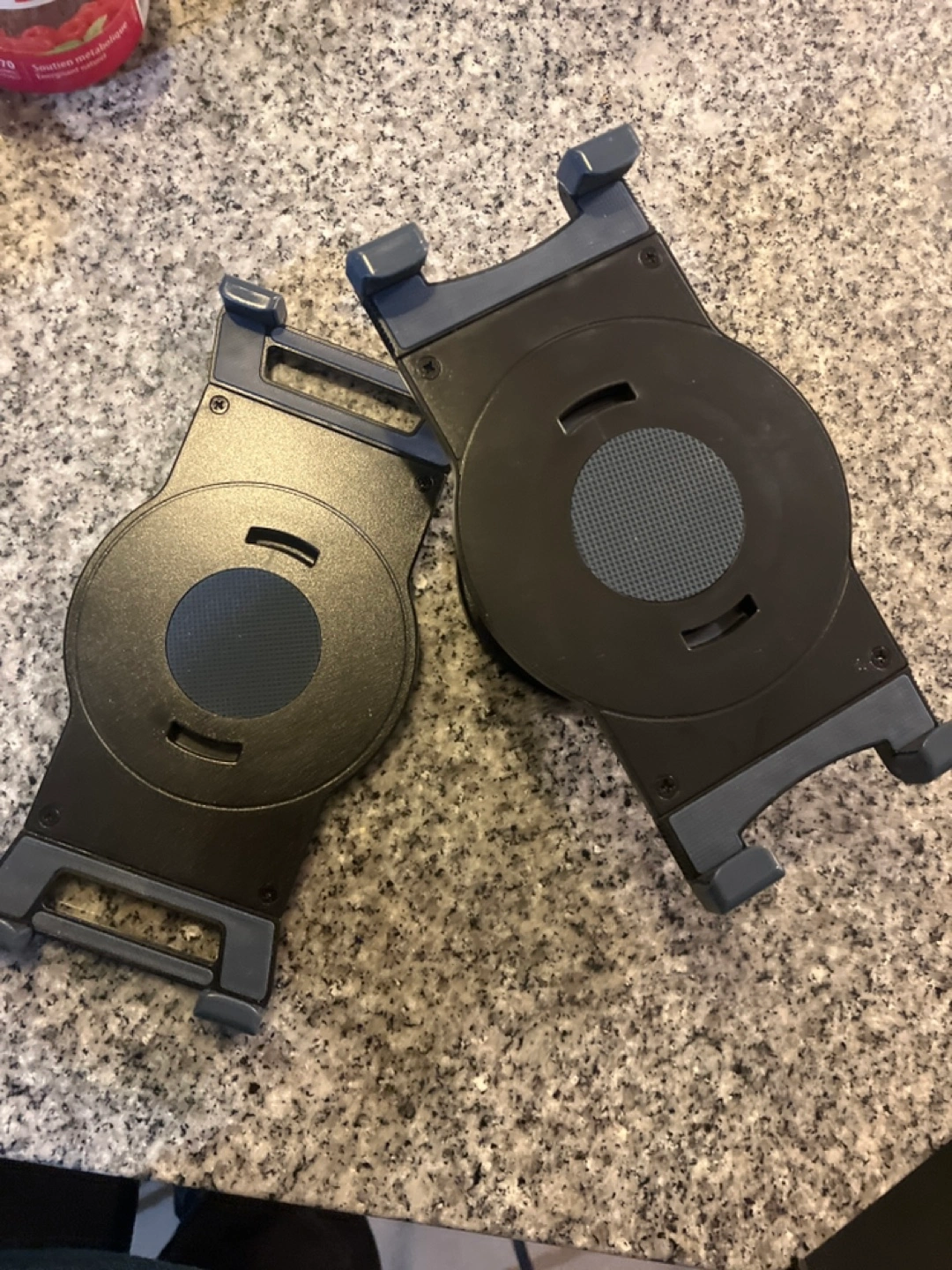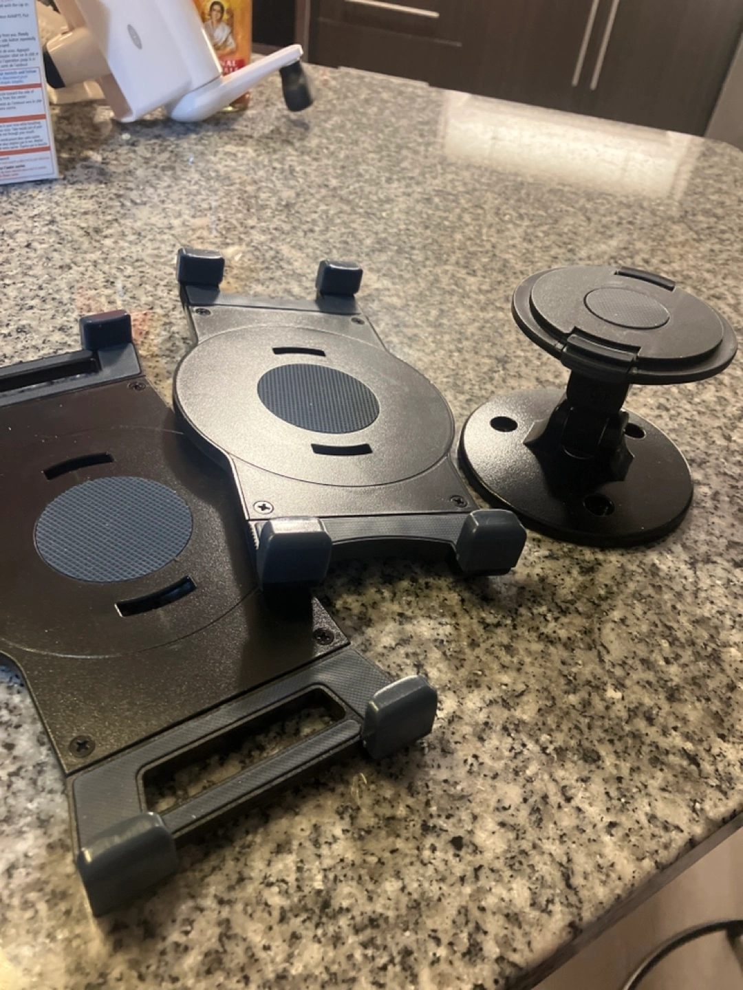 Wall mount tablet stand for holding a tablet. Rotates 360 degrees. Never used. No box.
