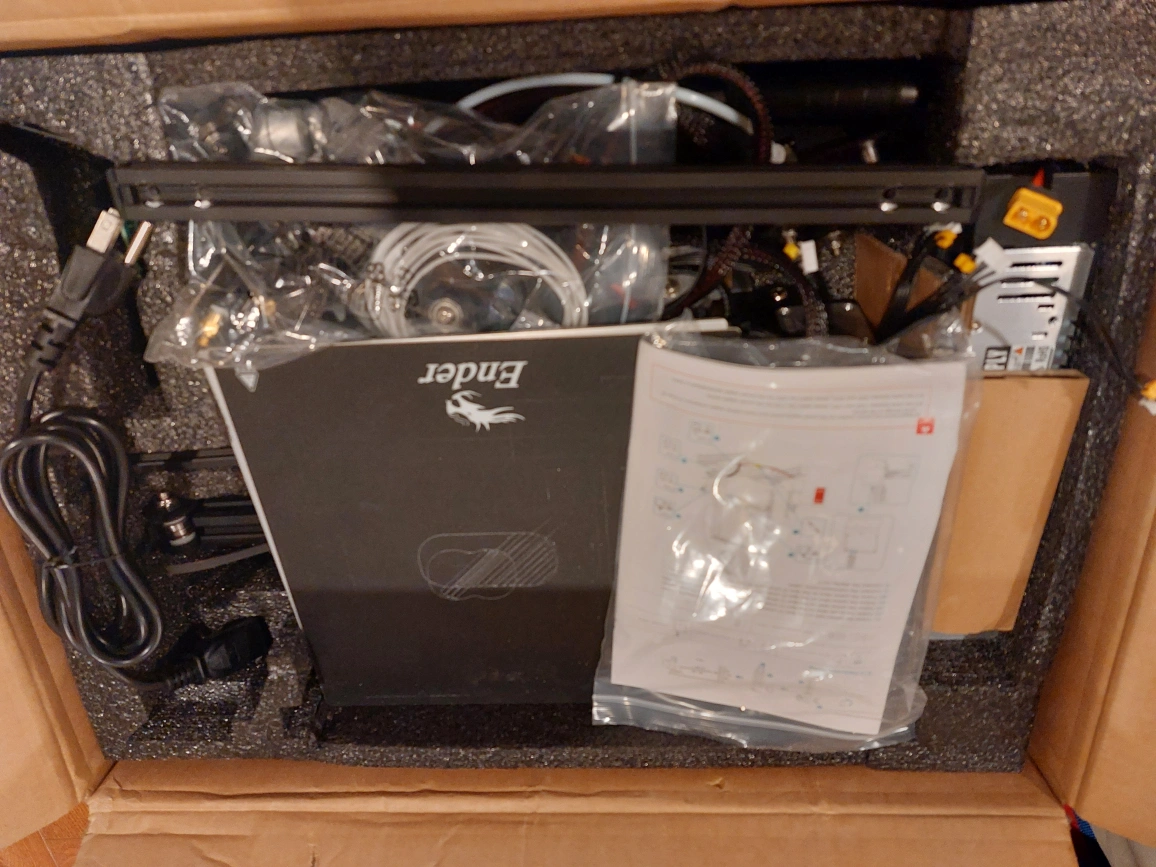 Comes with all accessories including the manual, some starter filament, cutting pliers, blade, nozzle cleaner, microSD card and reader.