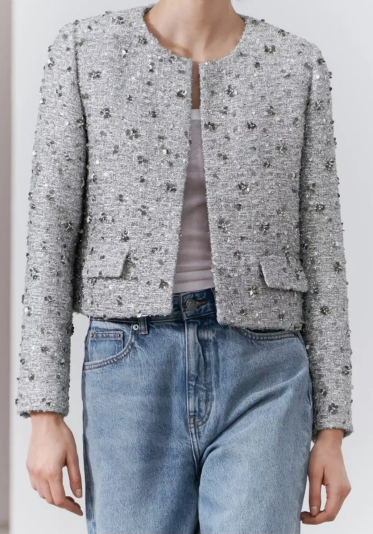 Ladies Zara Silver Sequinned Blazer Jacket Size Small Brand New with Tags GORGEOUS PIECE!!! Textured weave adorned with beads & sequins Round neckline and Ling sleeves with open front Length: approx'19 " Underarm to 8nderarm: 17" Retail 199.00 My price is FIRM.