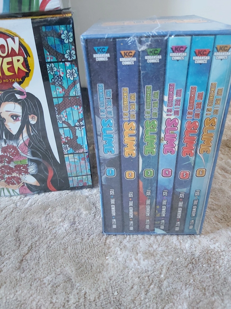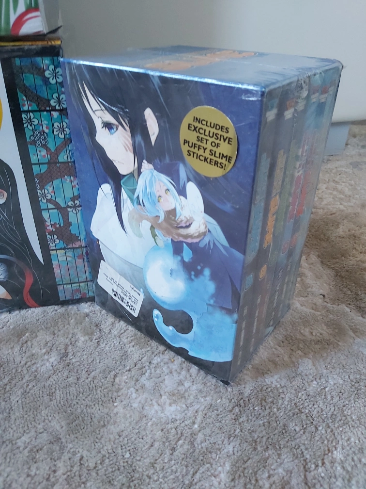 Set of 6 manga volumes. Includes exclusive set of puffy slime stickers. Brand new, unopened.