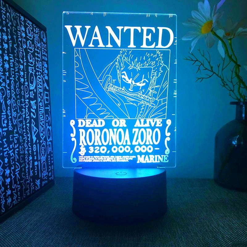 LED night light with a wanted poster of Roronoa Zoro from the anime One Piece.