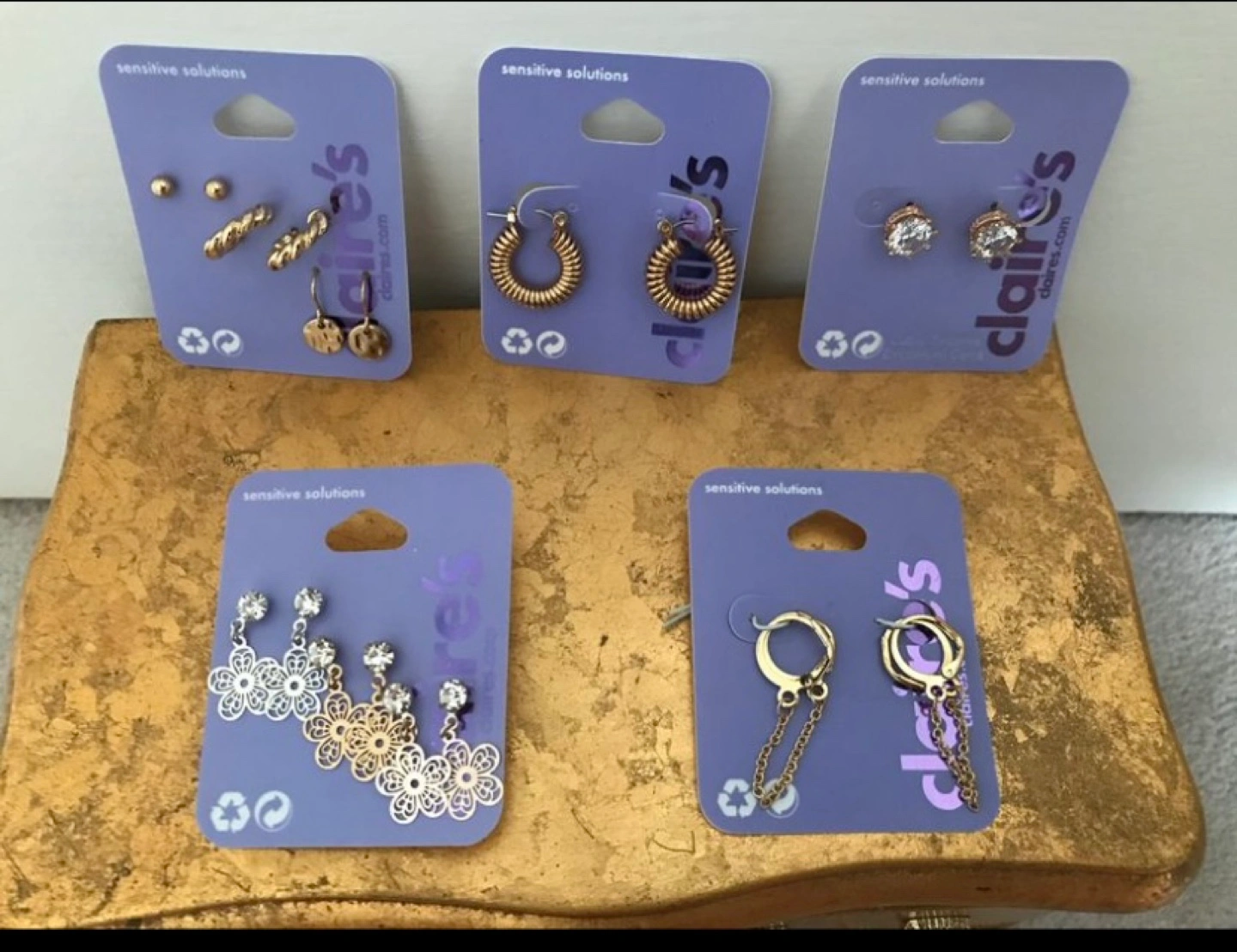 Multiple earring sets, including Claire’s, Forever 21, and Guess. All earrings are new and never worn.