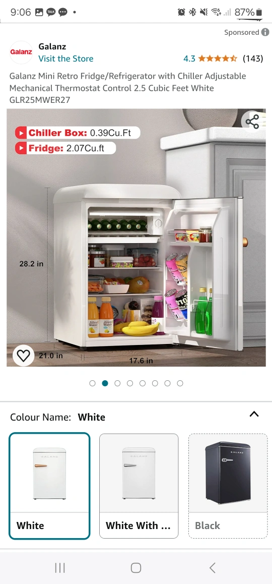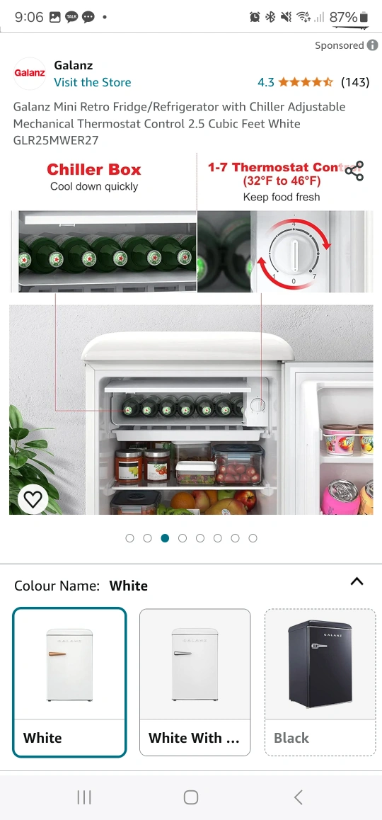 Galanz Mini Retro Fridge/Refrigerator with Chiller Adjustable Mechanical Thermostat Control 2.5 Cubic Feet White GLR25MWER27 https://a.co/d/0B4AueU