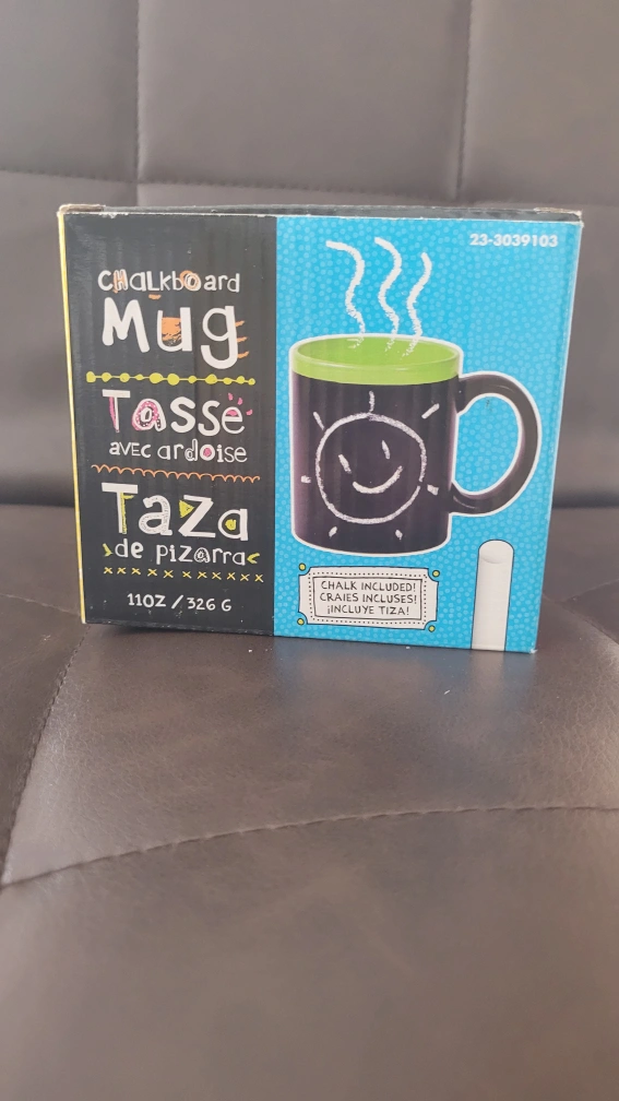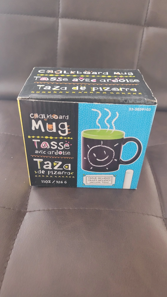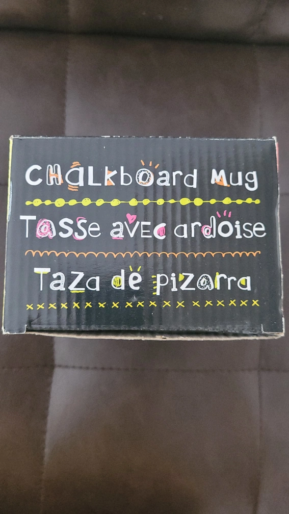 365Black mug with a chalkboard surface. Includes two pieces of chalk. 11oz/326g