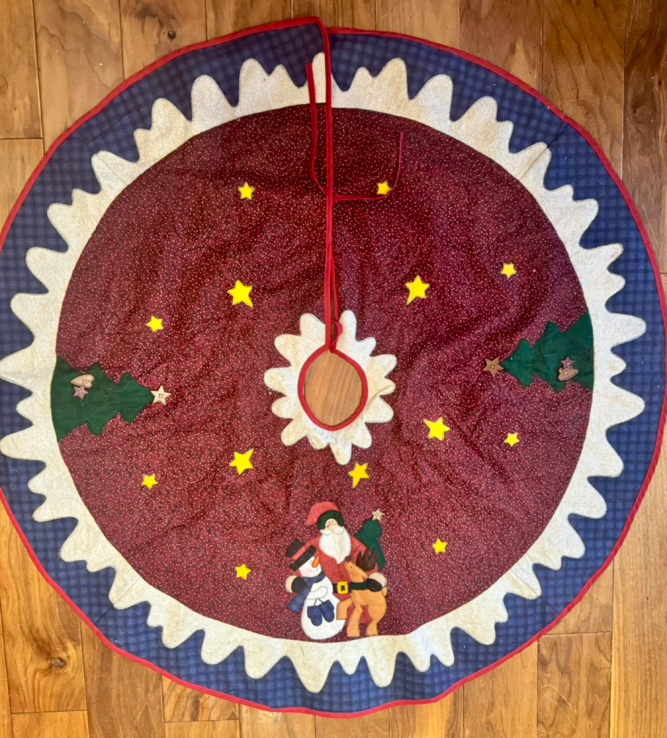 Add a touch of nostalgia and warmth to your holiday decor. This tree skirt is a delightful way to complete your festive display!