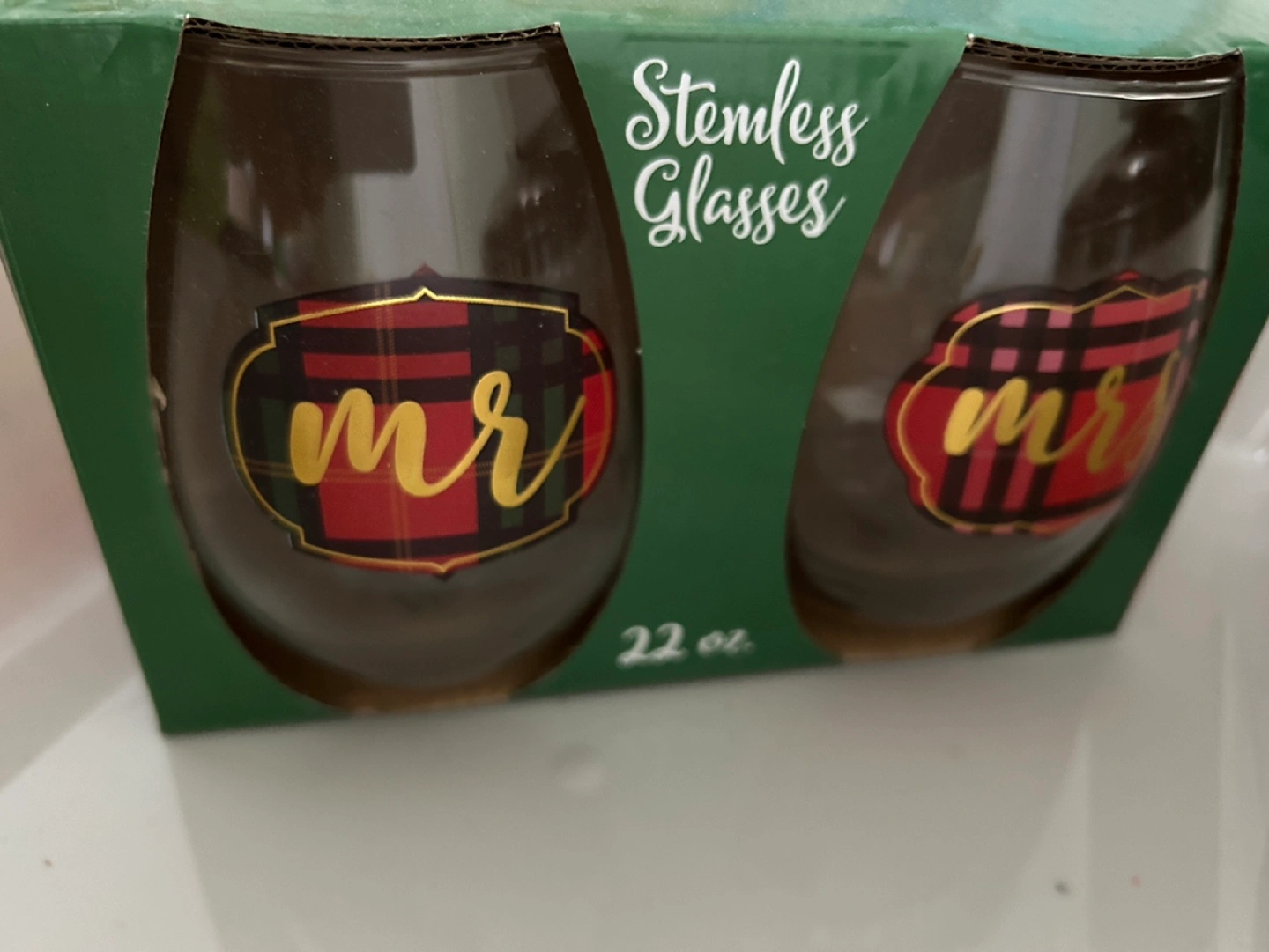 BNIB Mr. & Mrs. Stemless Wine Glasses