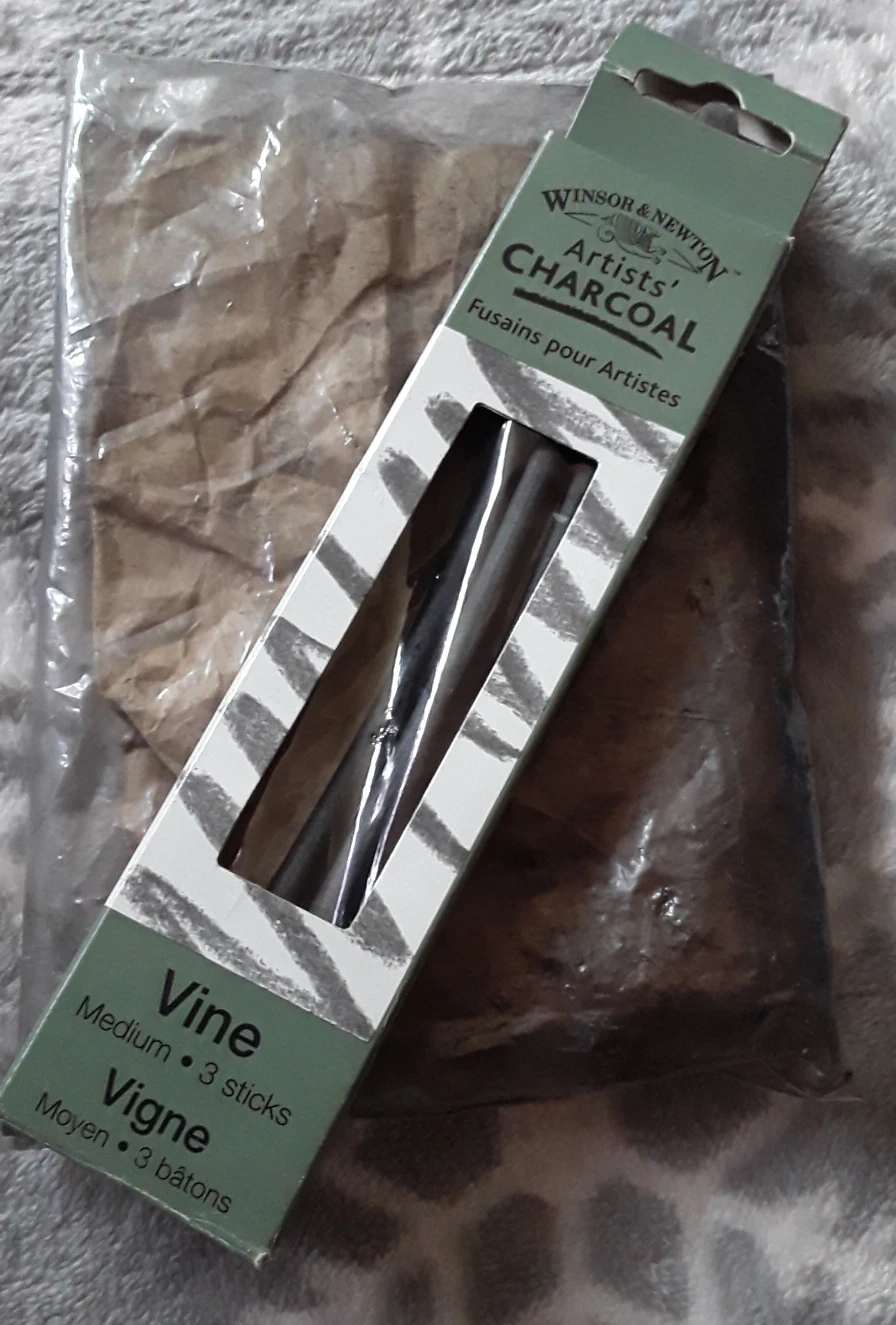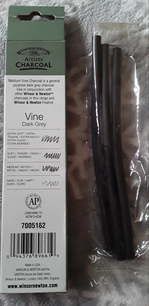 1. Pack of Windsor and Newton (highest quality) Artists' charcoal Vine medium of 3 unopened sticks. (including a free bag of used charcoal)
