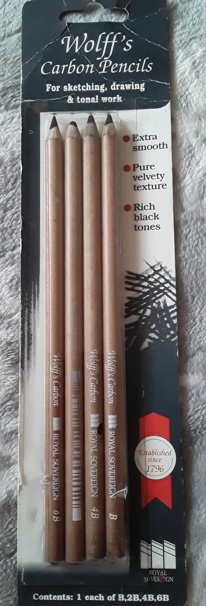2. 1 pack of Wolff's Carbon Pencils for sketching, drawing and tonal work. Opened to test them only. (none were ever sharpened or used full carbon tip on any)