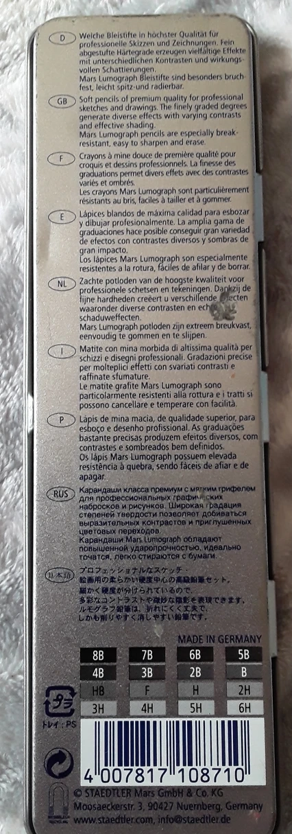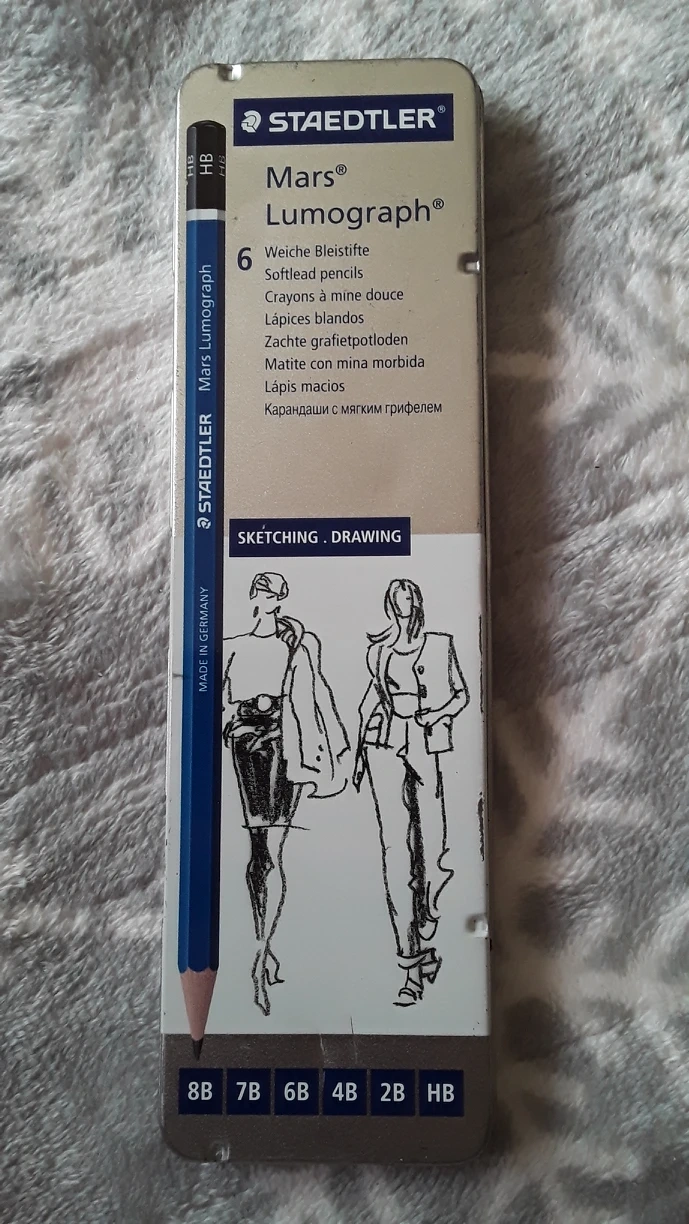 4. 1 tin box of 6 STAEDTLER Mars Lumograph softlead pencils for design sketching and drawing. Some used but only the 2B and 4B show wear.(I can substitute with another brand and same # free of cost.