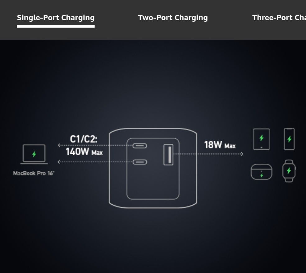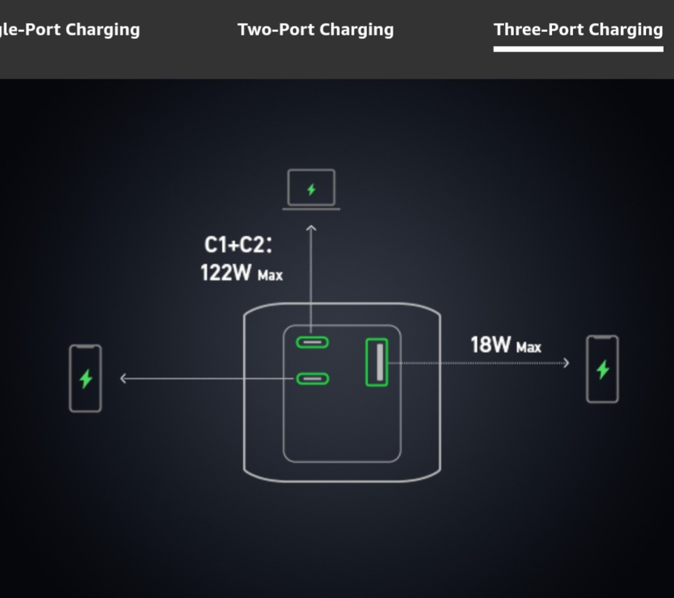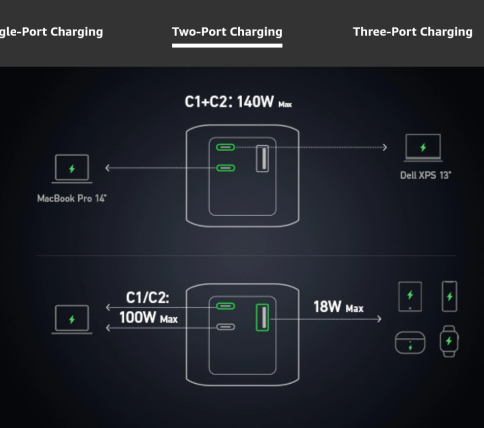 100W Output = 2x USB-C / 1x USB-C & 1x USB-A
