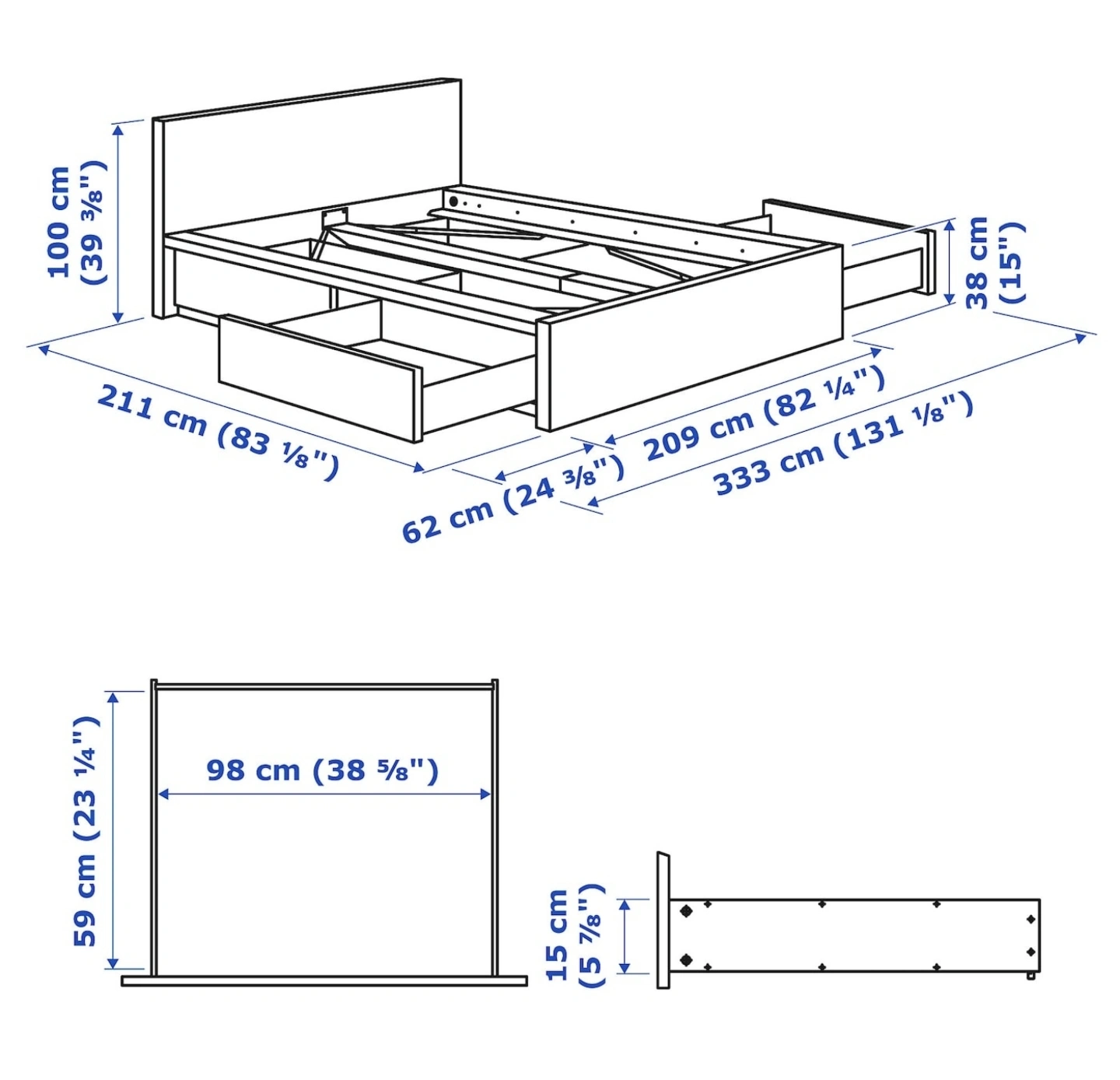 IKEA MALM King Bed Frame w/Storage