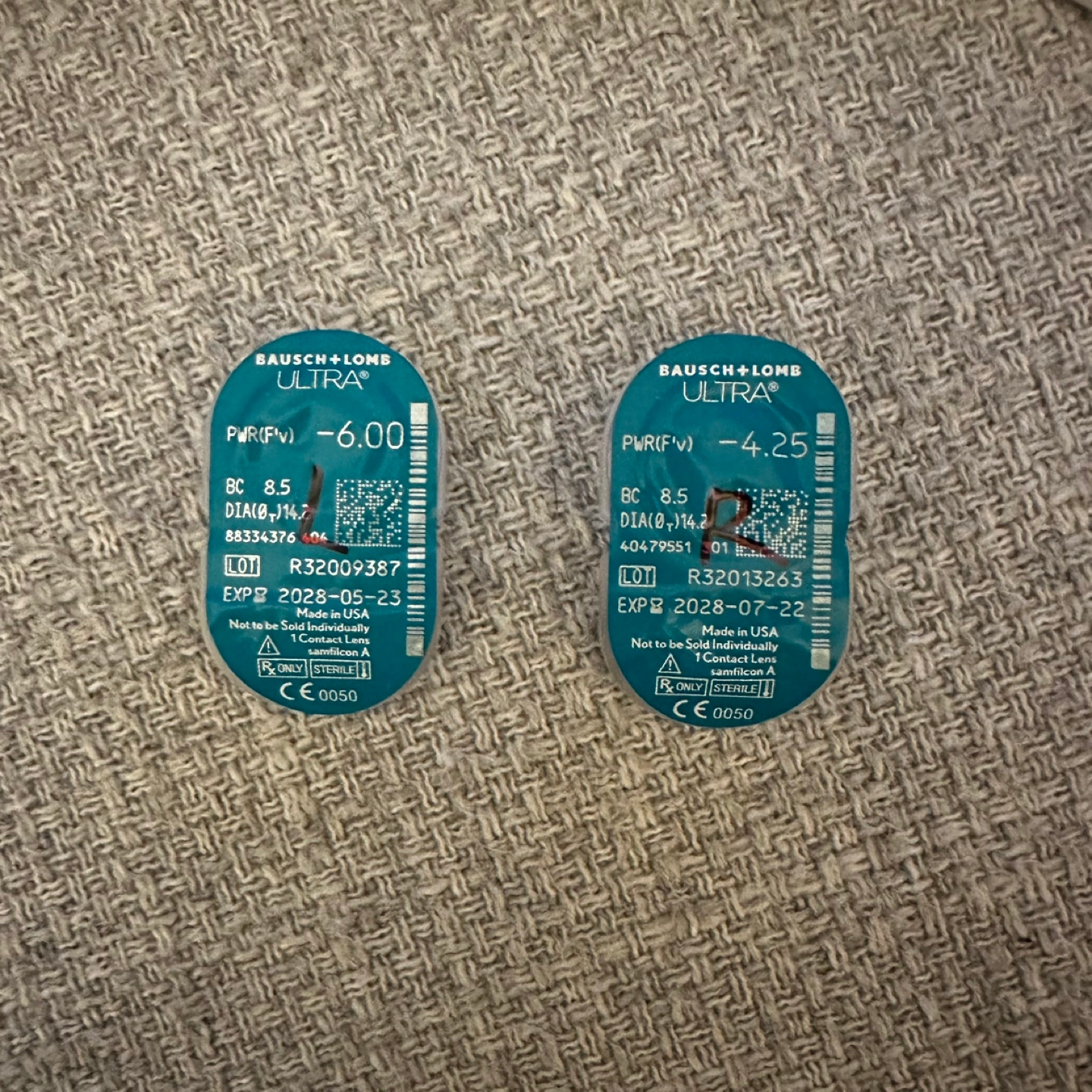 Bausch + Lomb ULTRA brand contact lenses. -6.00 and -4.25. Expiry date 2028. I use dailies now so don’t need this.