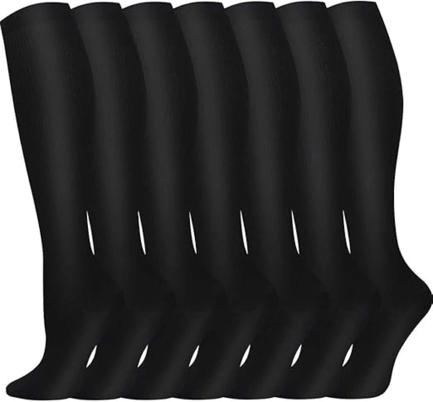 Compression Socks - 7 Pack - Knee High - Black - Unisex