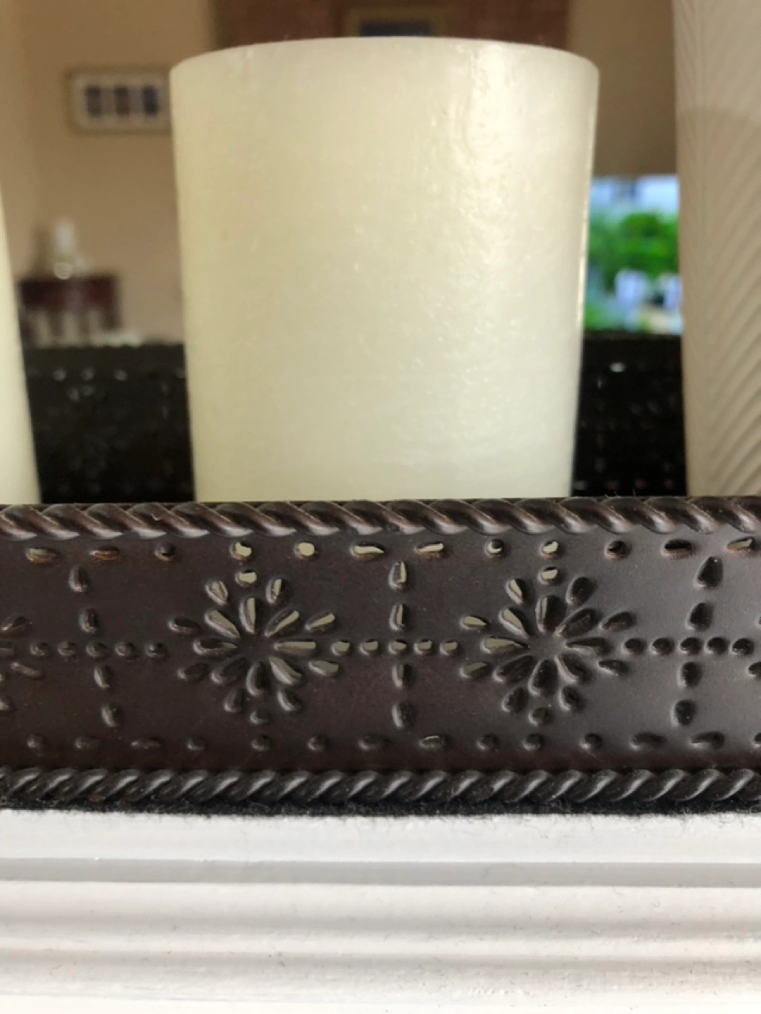 Shelf box is metal and fits most ledges and mantles. Has protective felt on bottom so won’t scratch any surfaces.