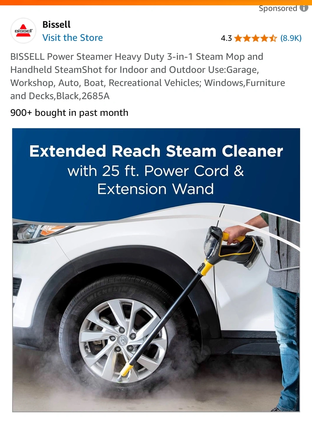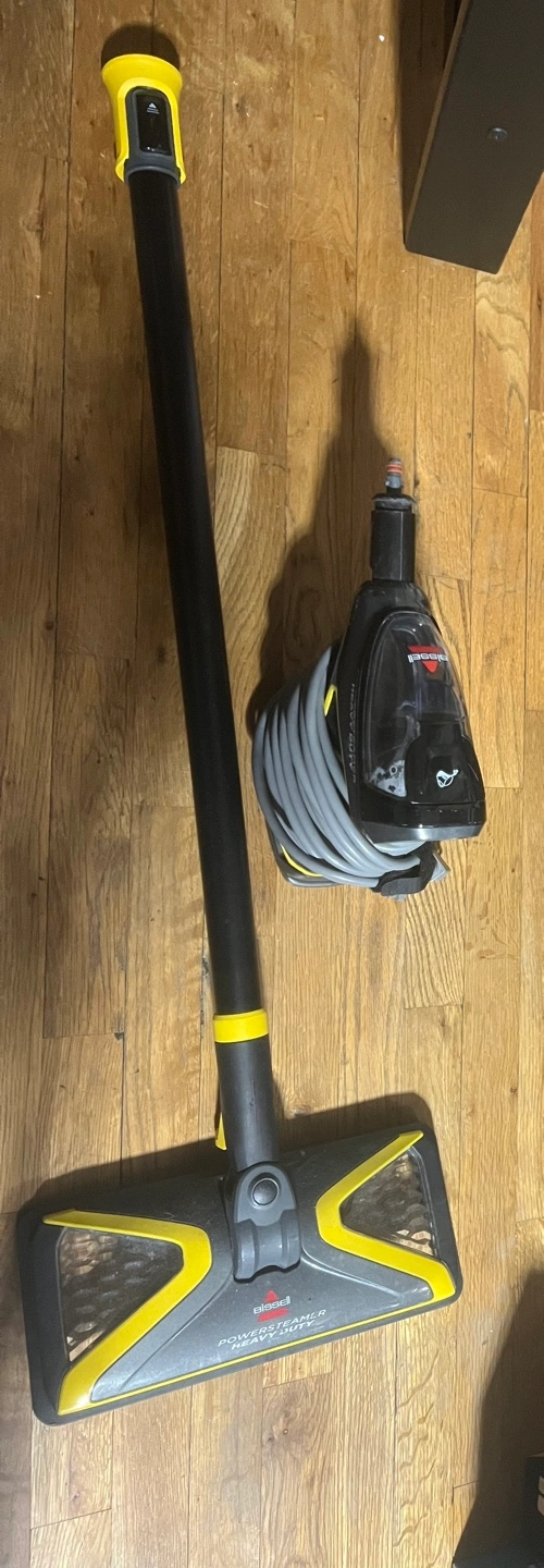Steam mop and handheld steamer with 25ft cord and extension wand. Includes multiple attachments and a carrying bag. Worked great on my hardwoods and tile floors.