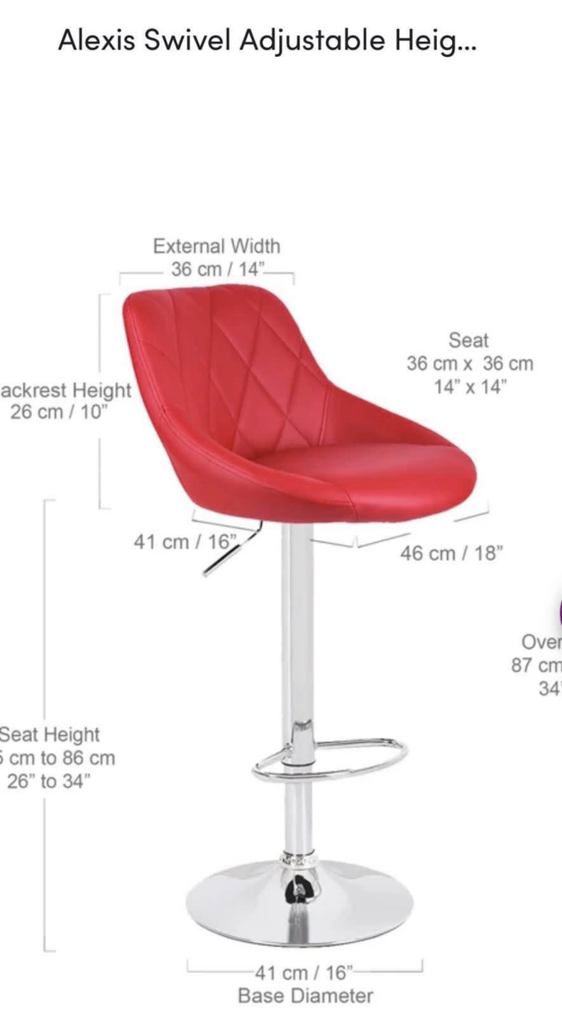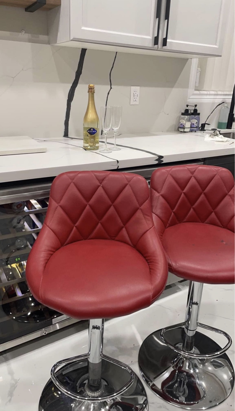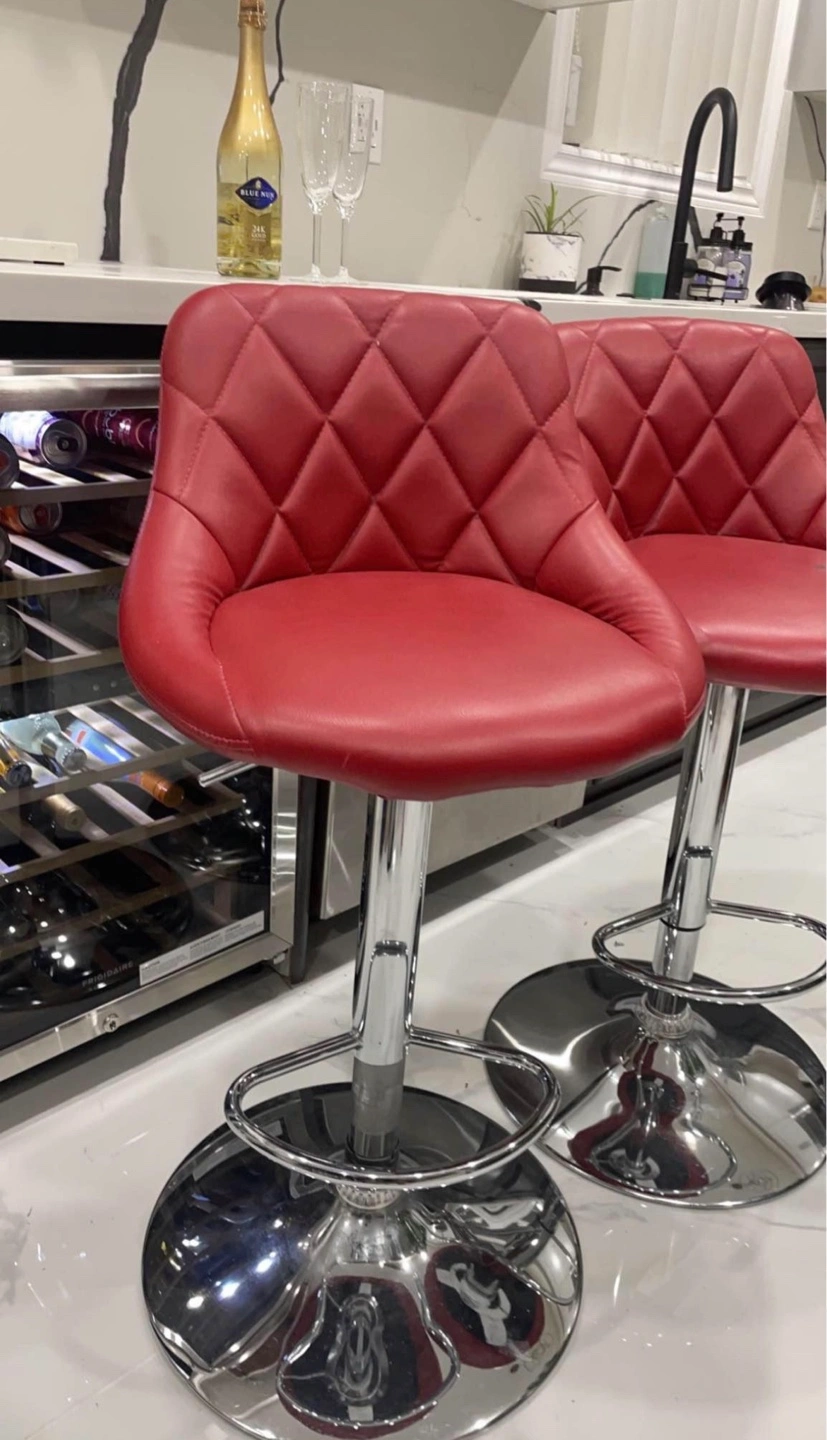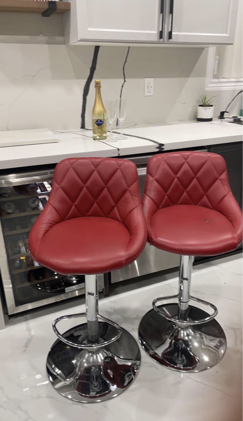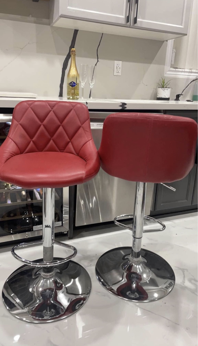 Red faux leather swivel bar stools with chrome base. Adjustable height. Good condition. Public meet up only. Negotiable price.