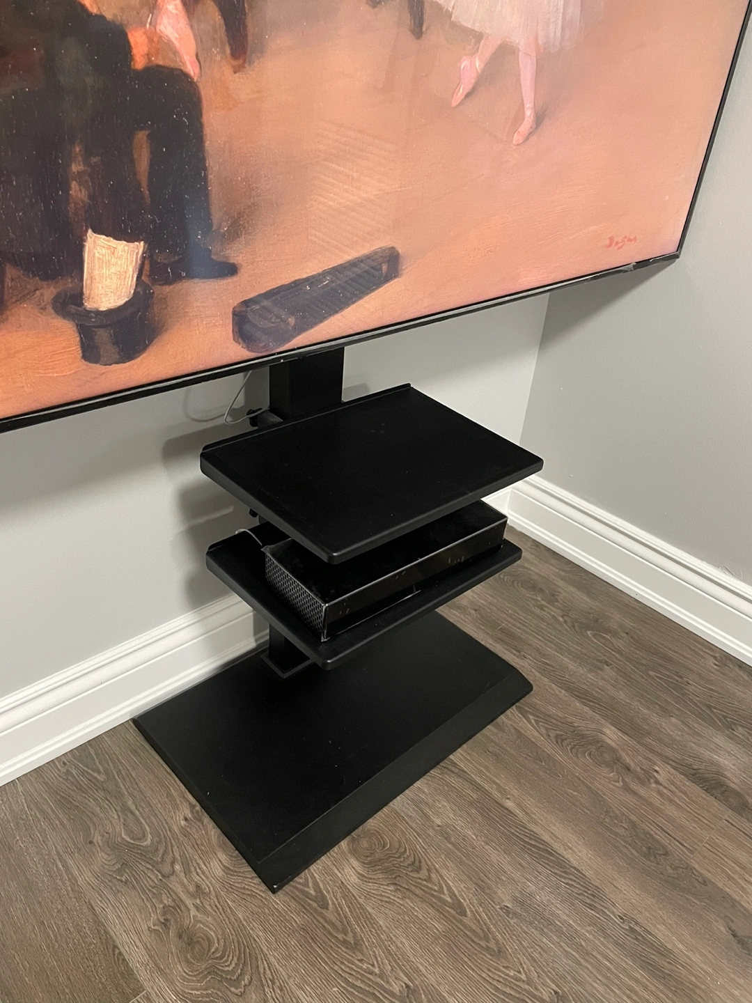 This Iron Base Floor TV Stand with 2 shelves is for 32-65 inch TV.