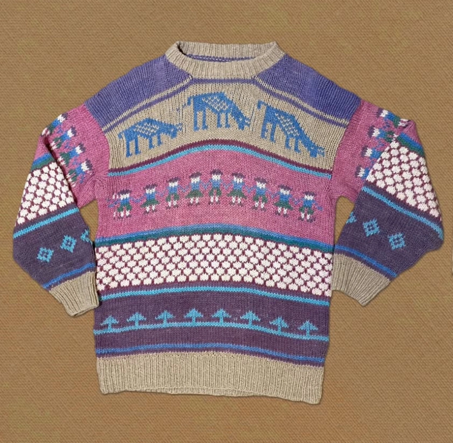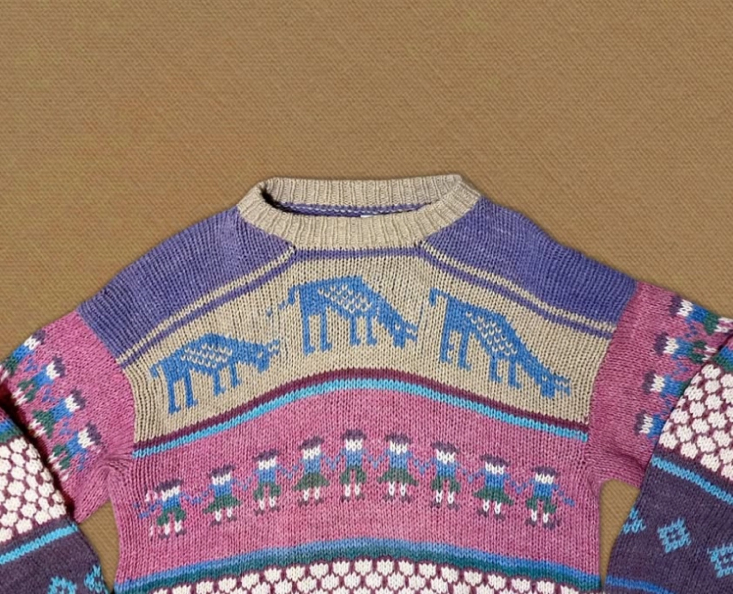 96Beautiful hand knit patterned sweater. Really lovely detail, one of a kind! No tags but I think it's wool Pick up or drop off near runnymede & Dundas Pit to pit- 22” Top to bottom- 30”