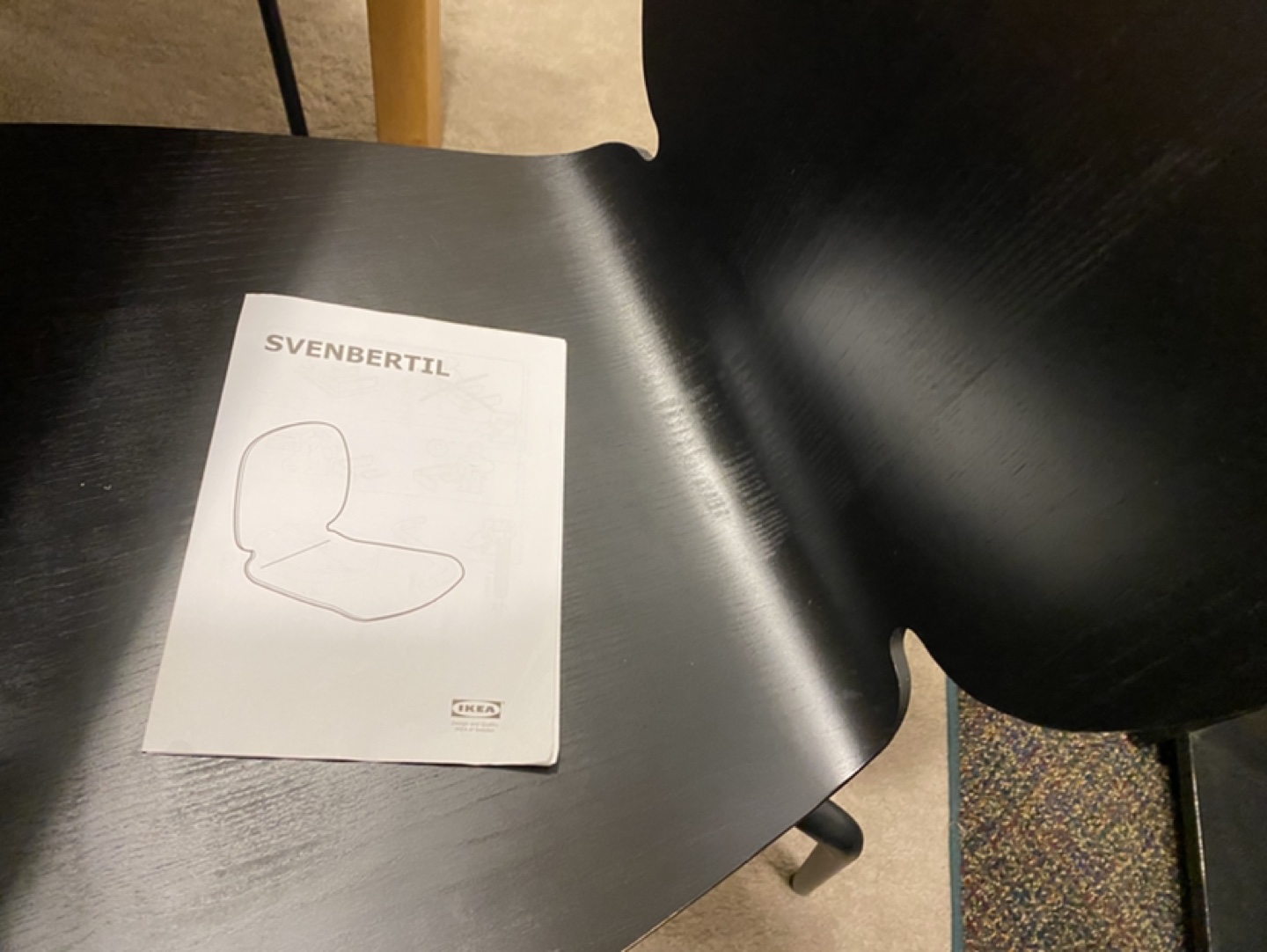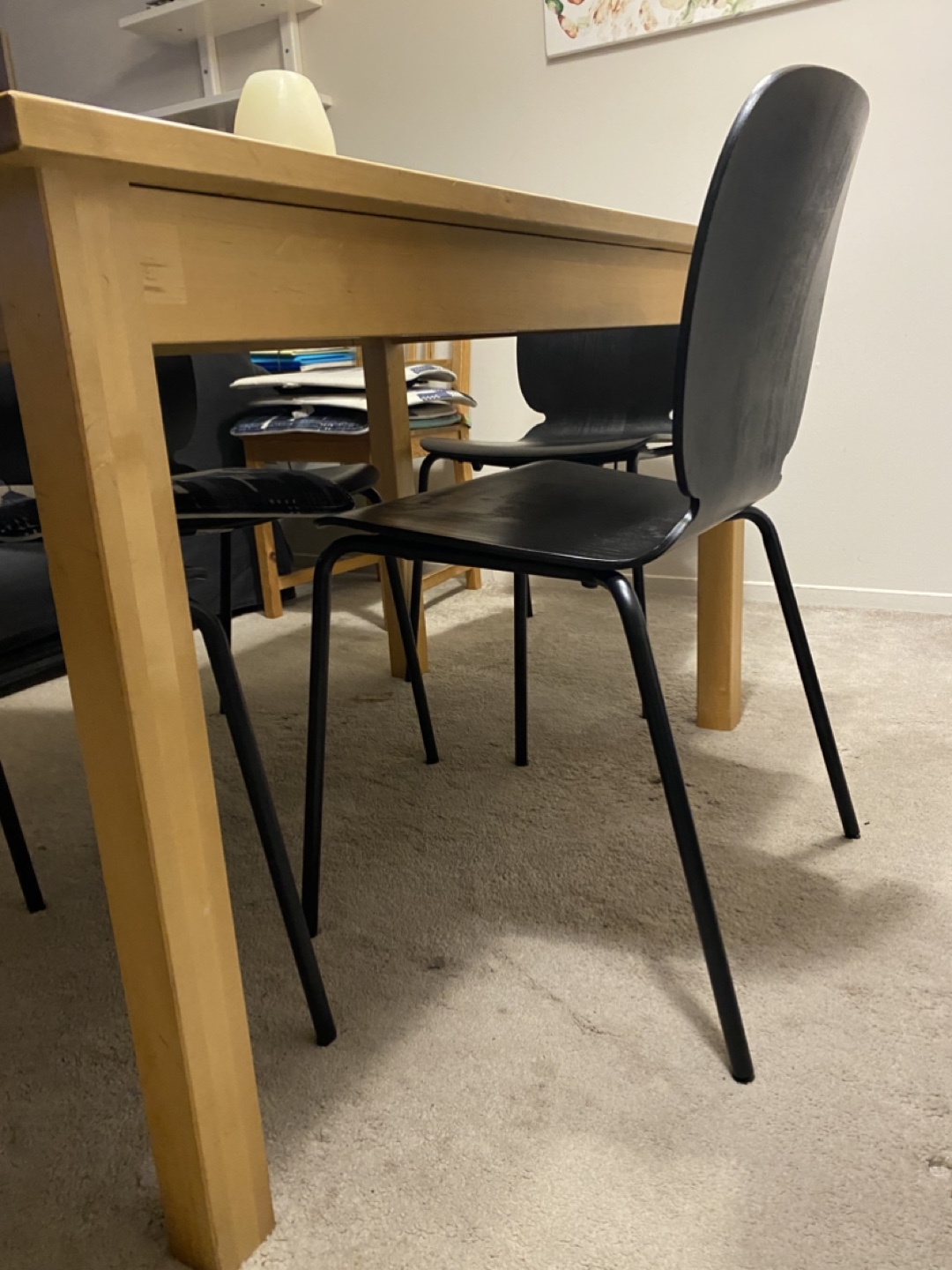 Set of four black Svenbertil dining chairs. Black wood with black metal legs. Good condition.