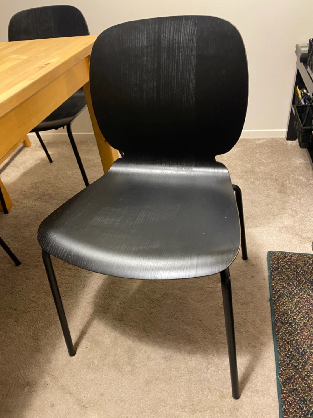 Set of four black Svenbertil dining chairs. Black wood with black metal legs. Good condition.