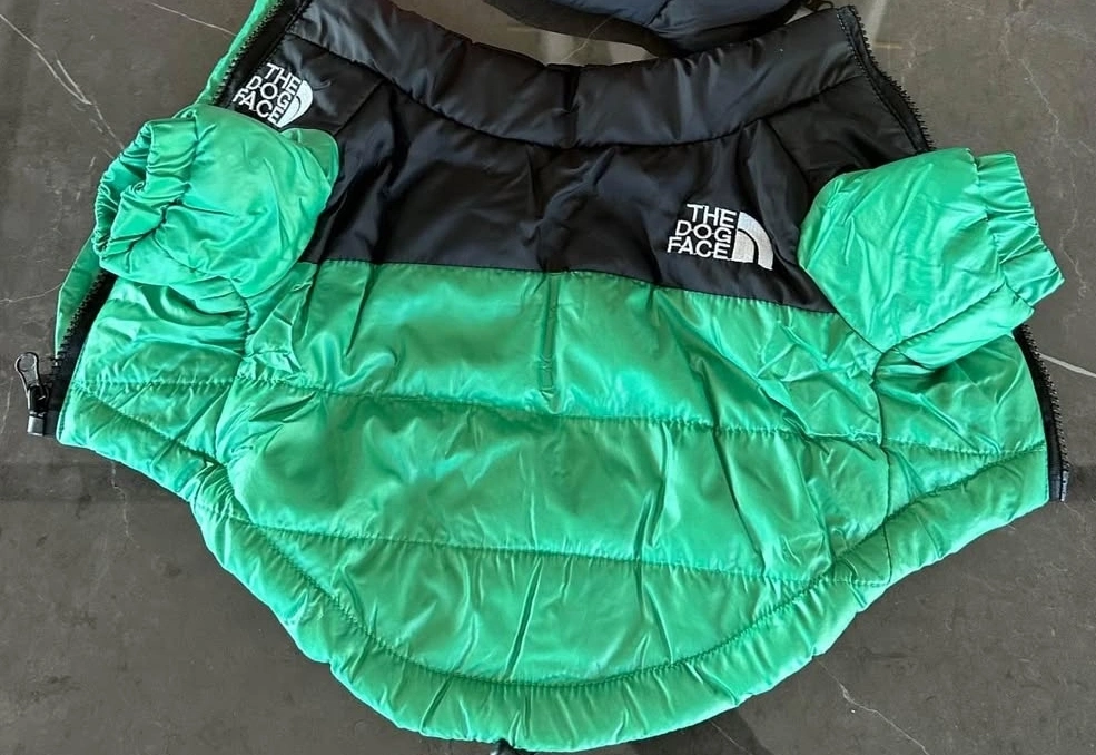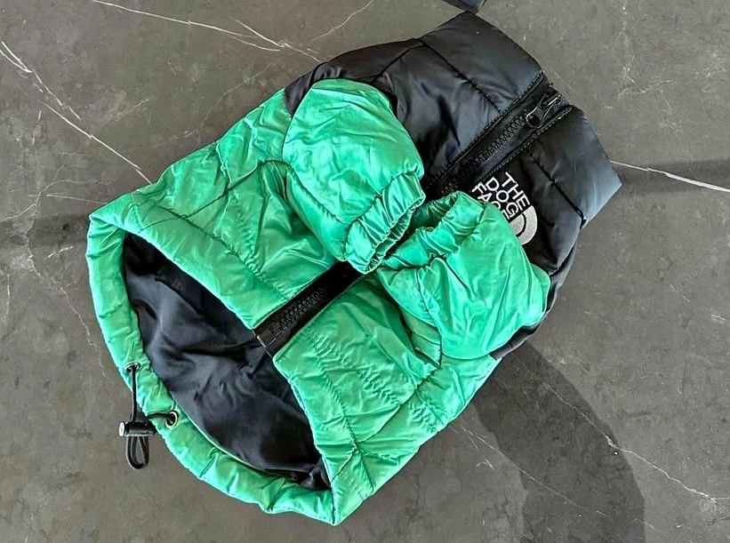 This lightweight, insulated jacket is perfect for chilly days, offering both comfort and fashion. Designed with a trendy two-tone look, featuring a mint green body and contrasting black upper section, this puffer jacket provides maximum warmth while keeping your dog looking sleek.