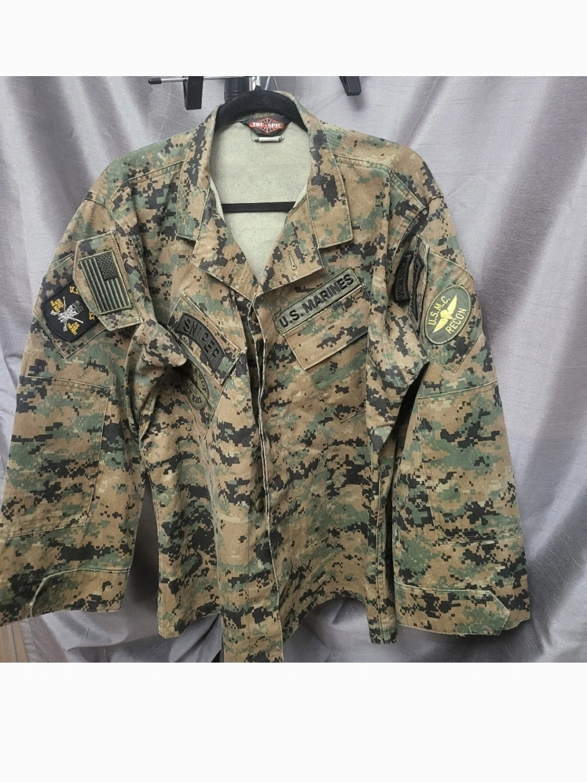 370Camouflage shirt with patches. Large regular size. In excellent condition.. Check out my other items. Great gift ideas.. Discount when bundling items. pick up St.Clair Ave west and Laughton Ave (M6N 2X7) Xposted OR can meet at St. Clair West Station, but only on the weekends.
