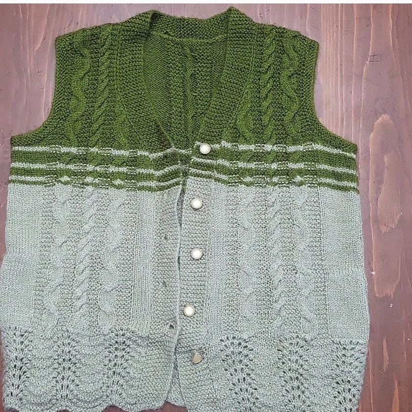 370Sleeveless knitted vest with green and grey cable knit patterns. Has button closure and pockets. Beige knitted cardigan with button closure. Each $25 Check out my other items. Great gift ideas.. Discount when bundling items. pick up St.Clair Ave west and Laughton Ave (M6N 2X7) Xposted OR can meet at St. Clair West Station, but only on the weekends.
