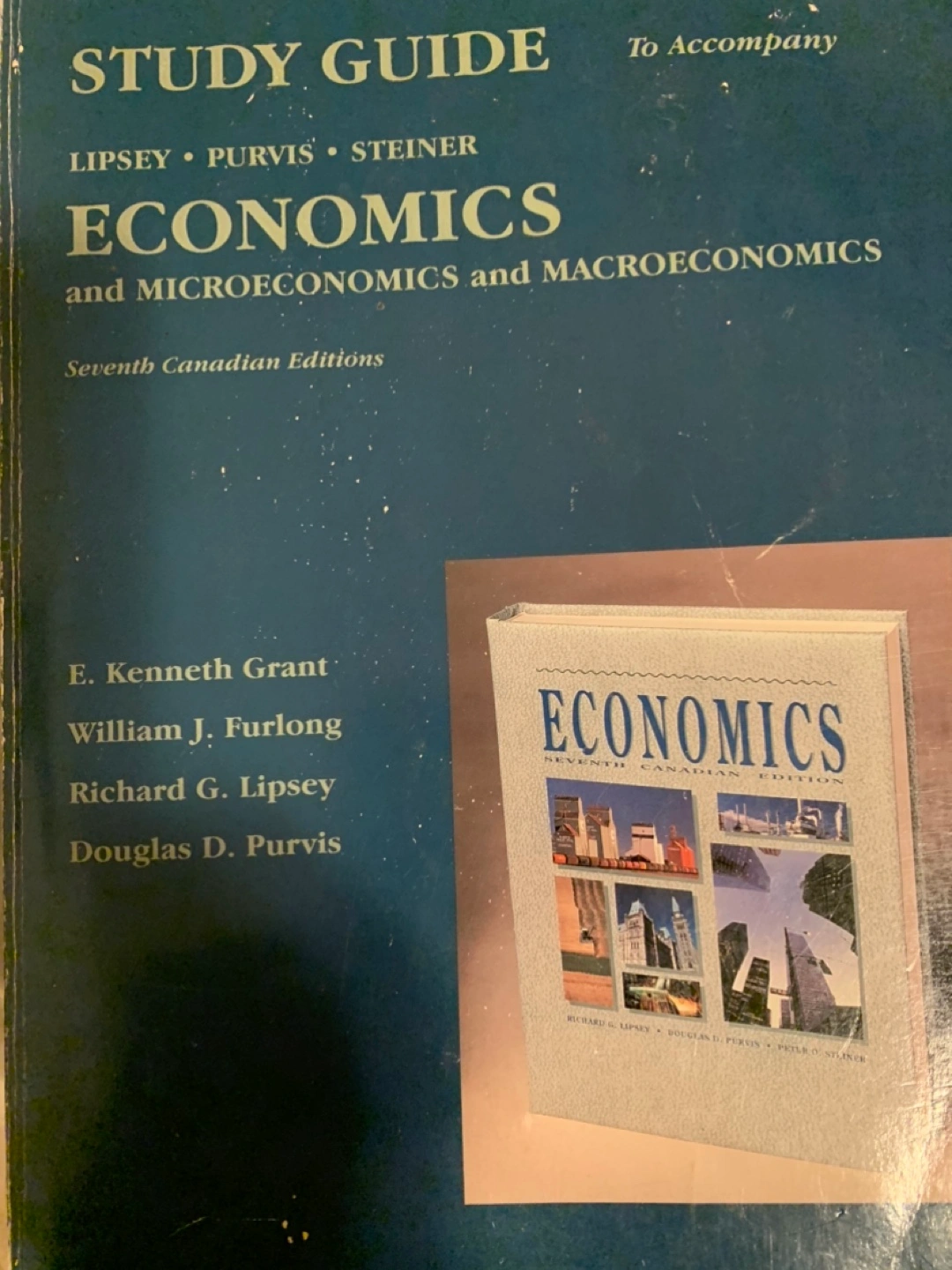 Study guide to accompany Lipsey, Purvis, Steiner Economics and Microeconomics and Macroeconomics Seventh Canadian Edition. Written by E. Kenneth Grant, William J. Furlong, Richard G. Lipsey, and Douglas D. Purvis.