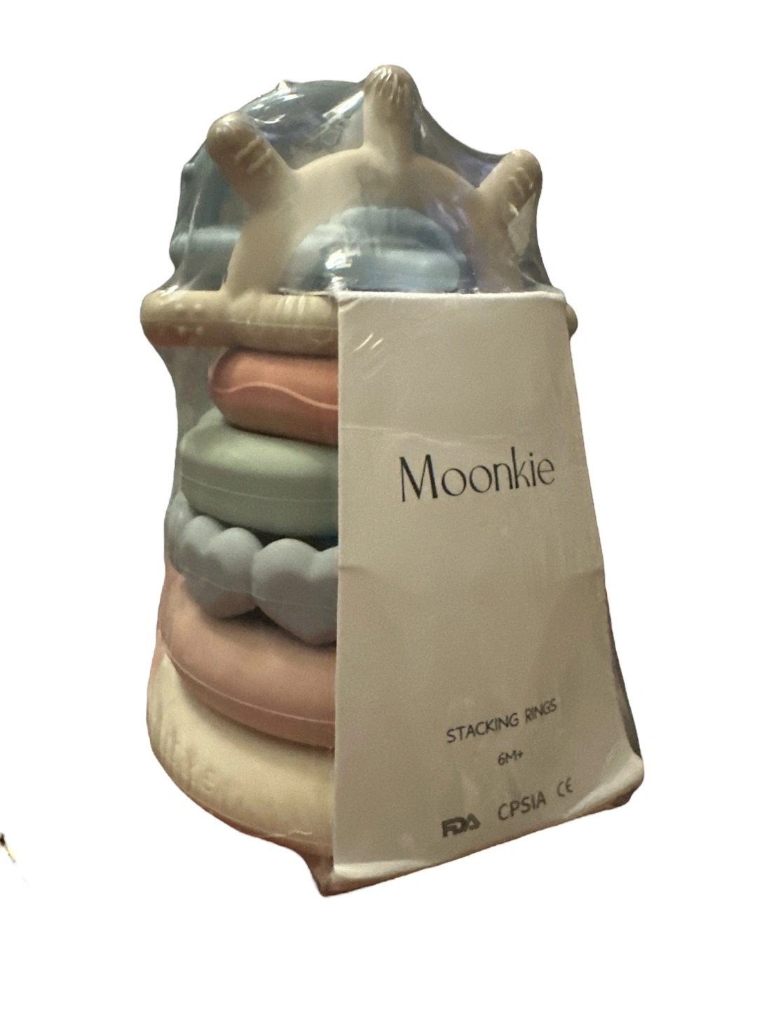 Stacking rings for babies. Brand new, in original packaging.