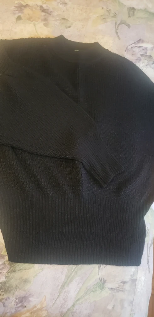 Long-sleeved, black knit sweater