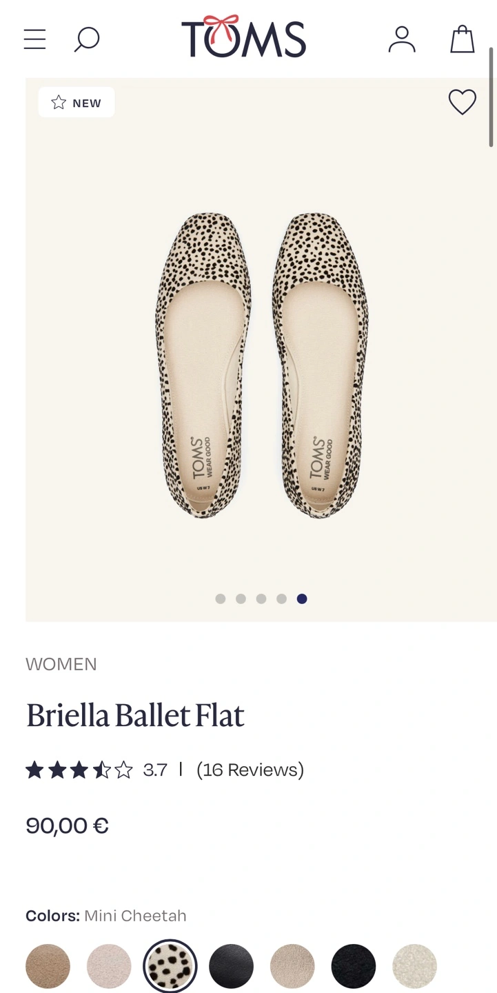 TOMS Briella Ballet Flats Size 7 Mini Cheetah