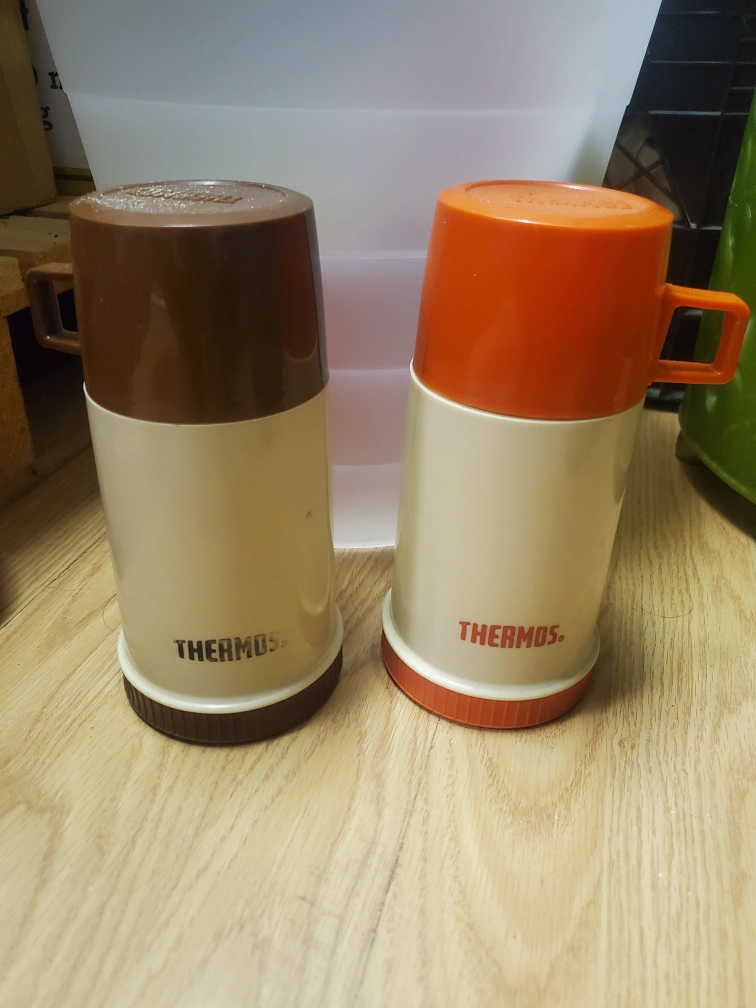 This is for a set of two Vintage Thermos Mugs/bottles. One is orange and one is brown with a tan middle. Pickup dufferin and Steeles area or shipping available for a fee. See other ads for more Thermos wear.