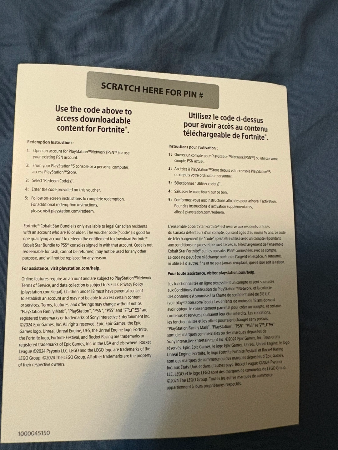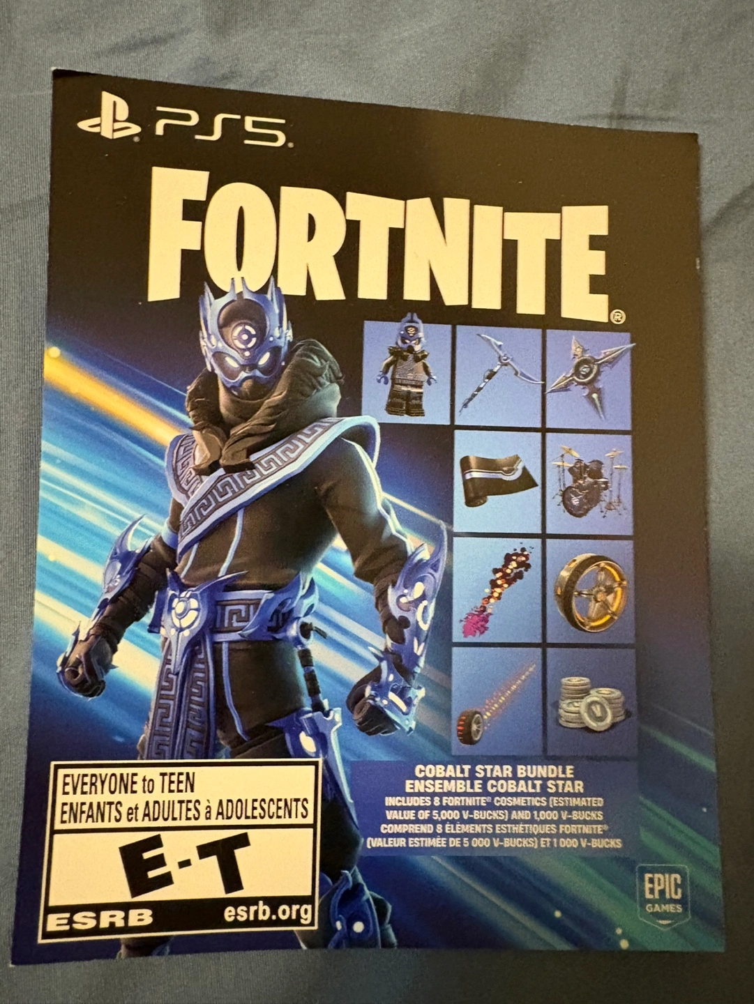 205Exclusive PS5 Fortnite Code with 1000 VBucks and Cosmetic items Code hasn’t been redeemed yet. Don’t play Fortnite and therefore don’t need the code.