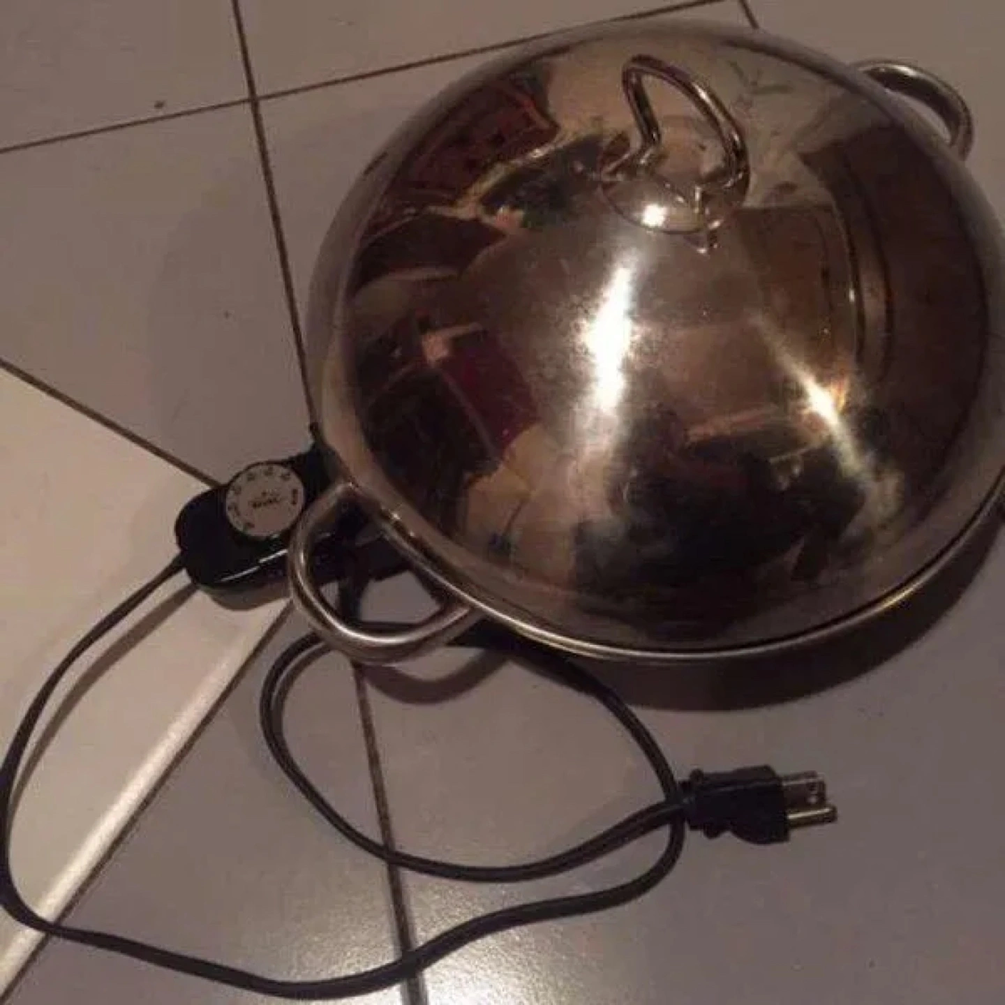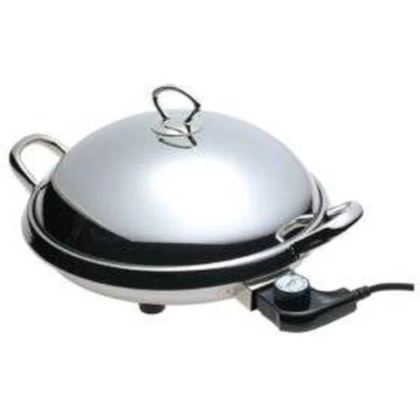 434Stainless steel electric skillet with a temperature control dial. Includes a lid.