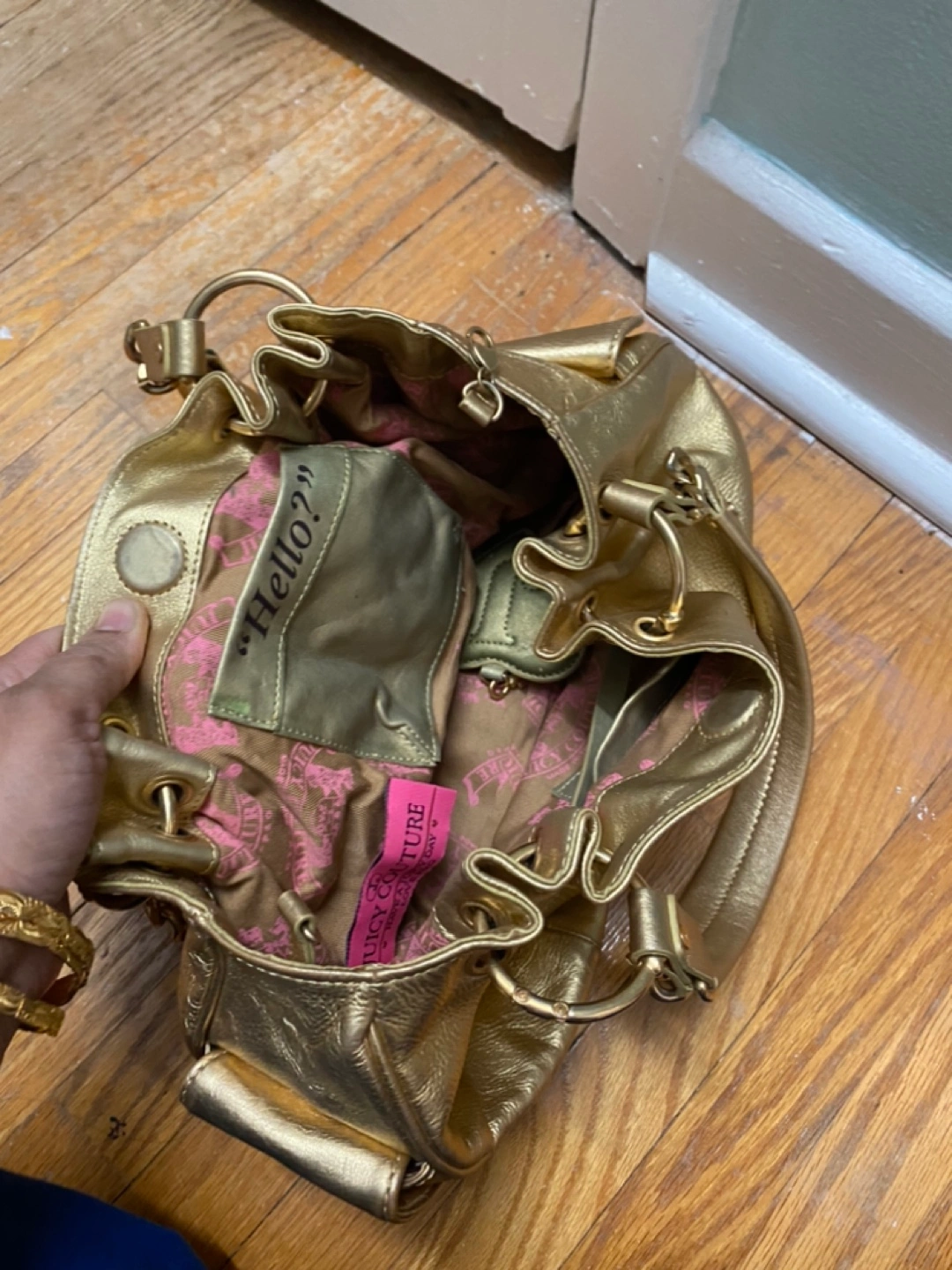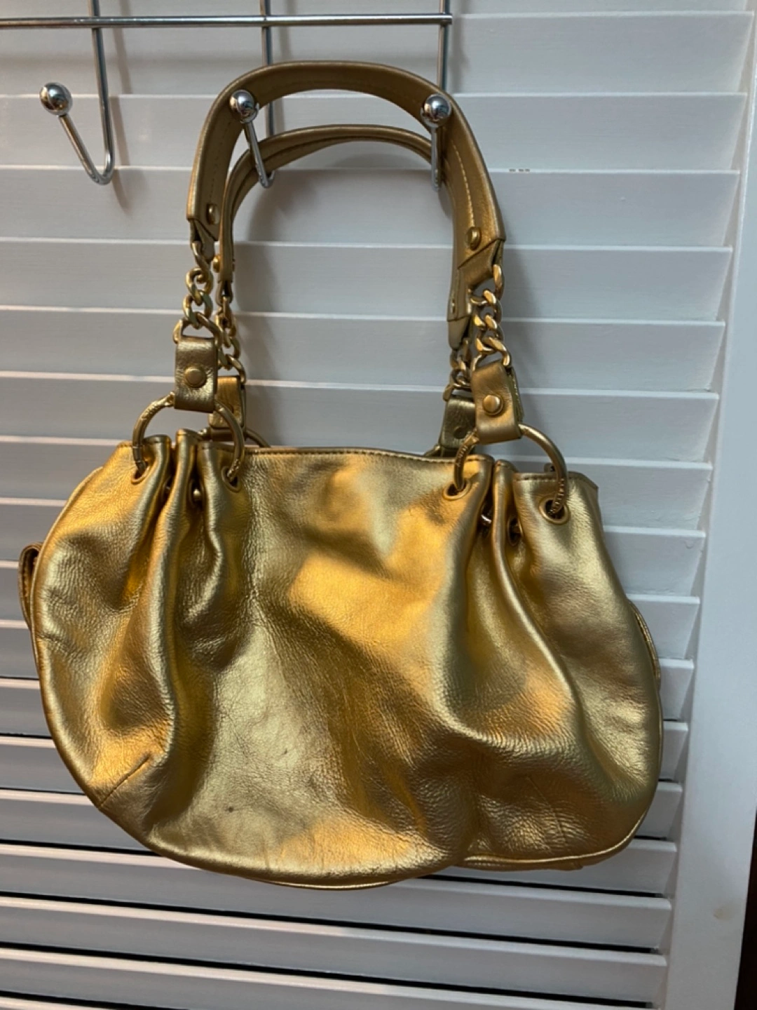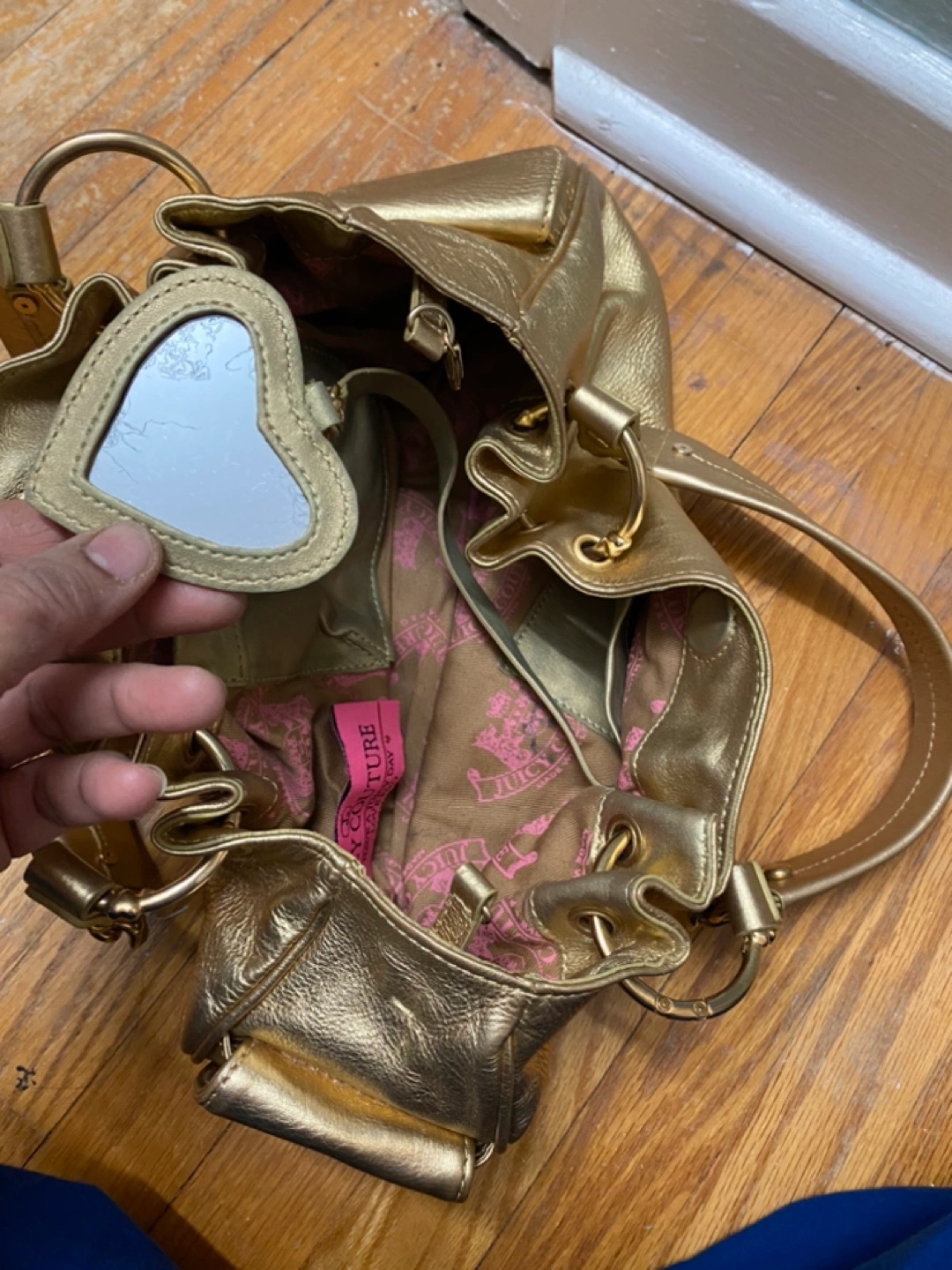 Gold handbag with chain straps, a small pocket on the side, and a heart-shaped mirror on the inside. Pick up near steeles and Bathurst