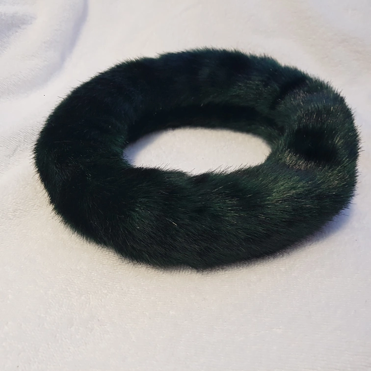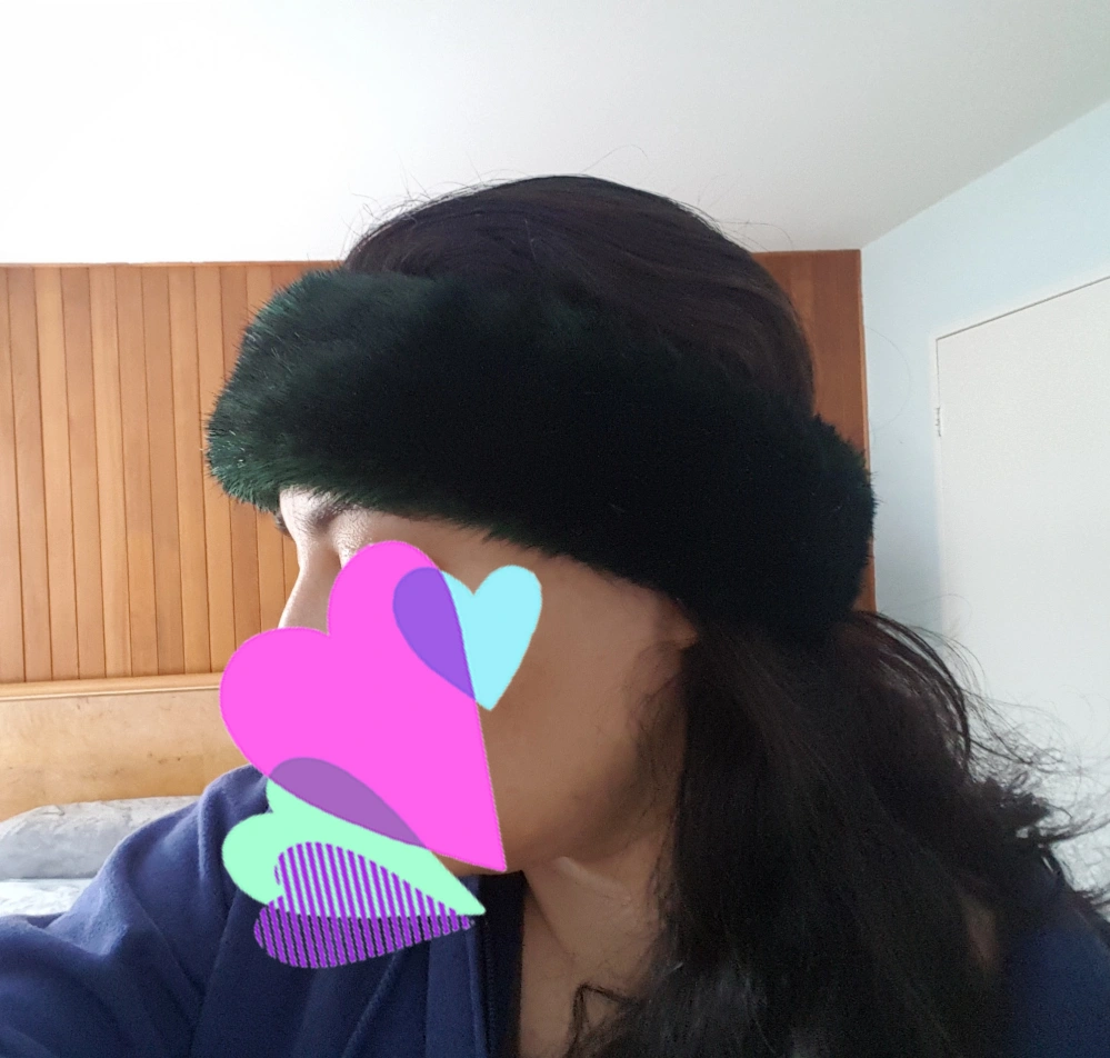 Green faux fur ear warmer. Made in Canada.