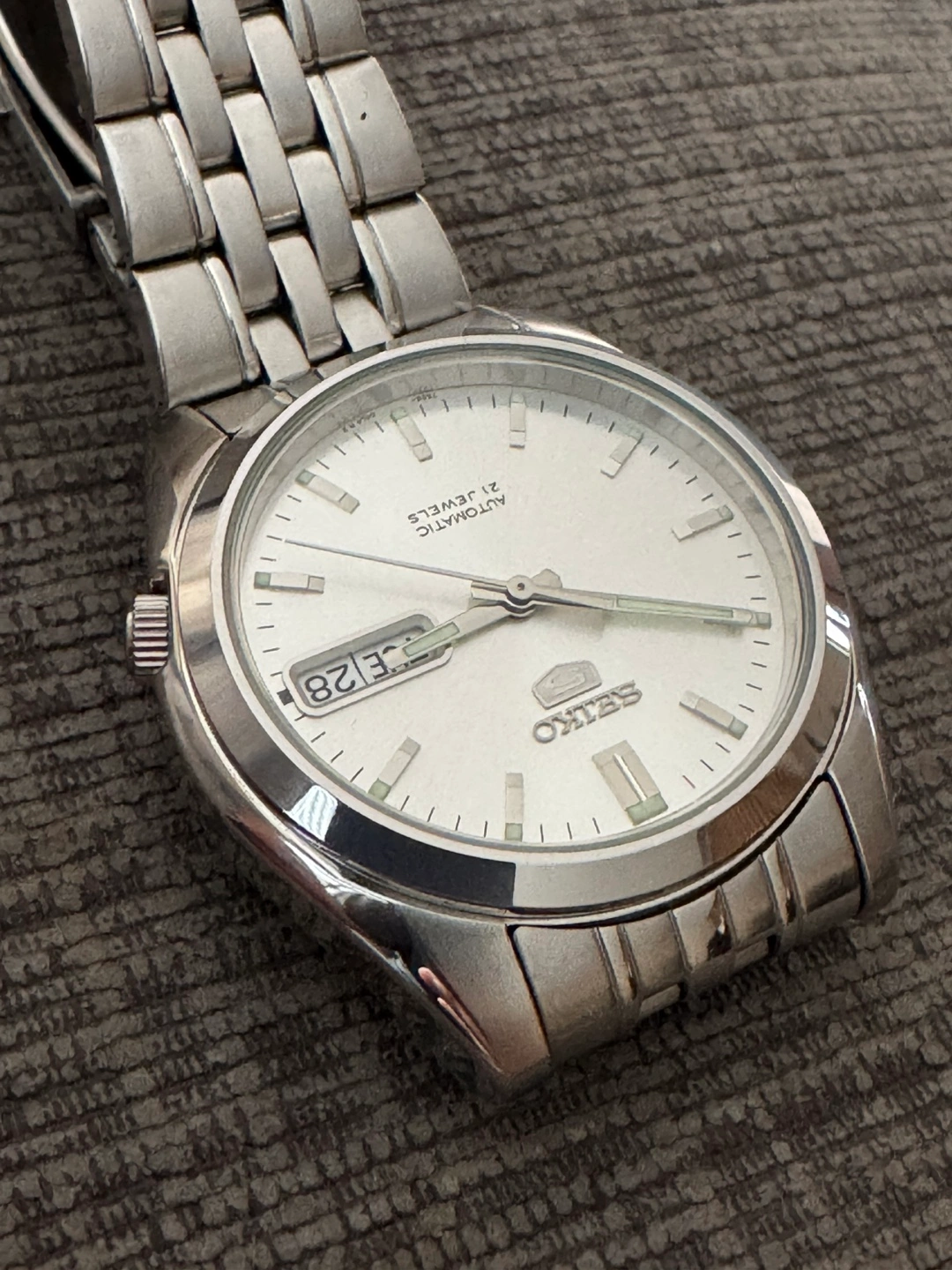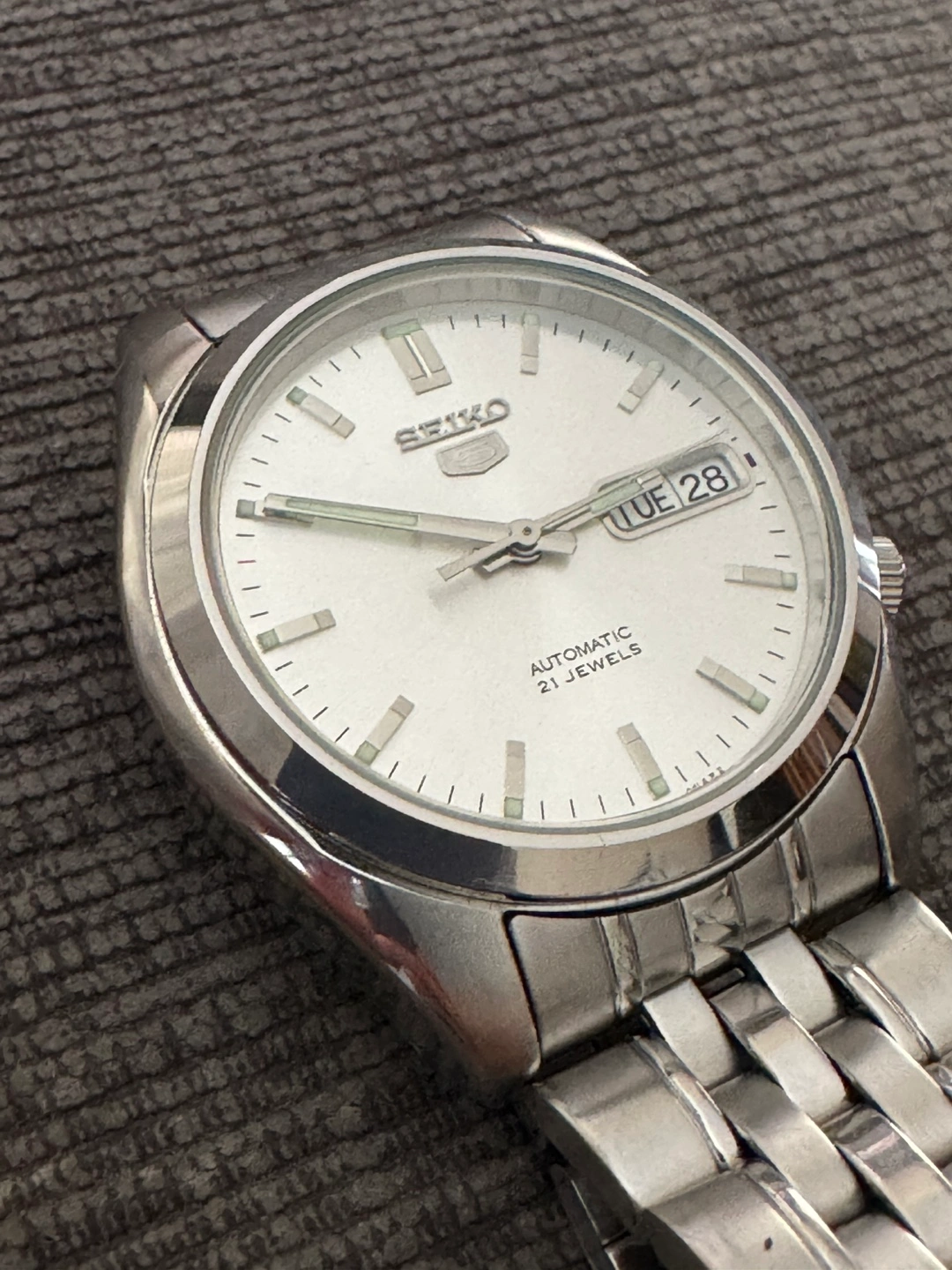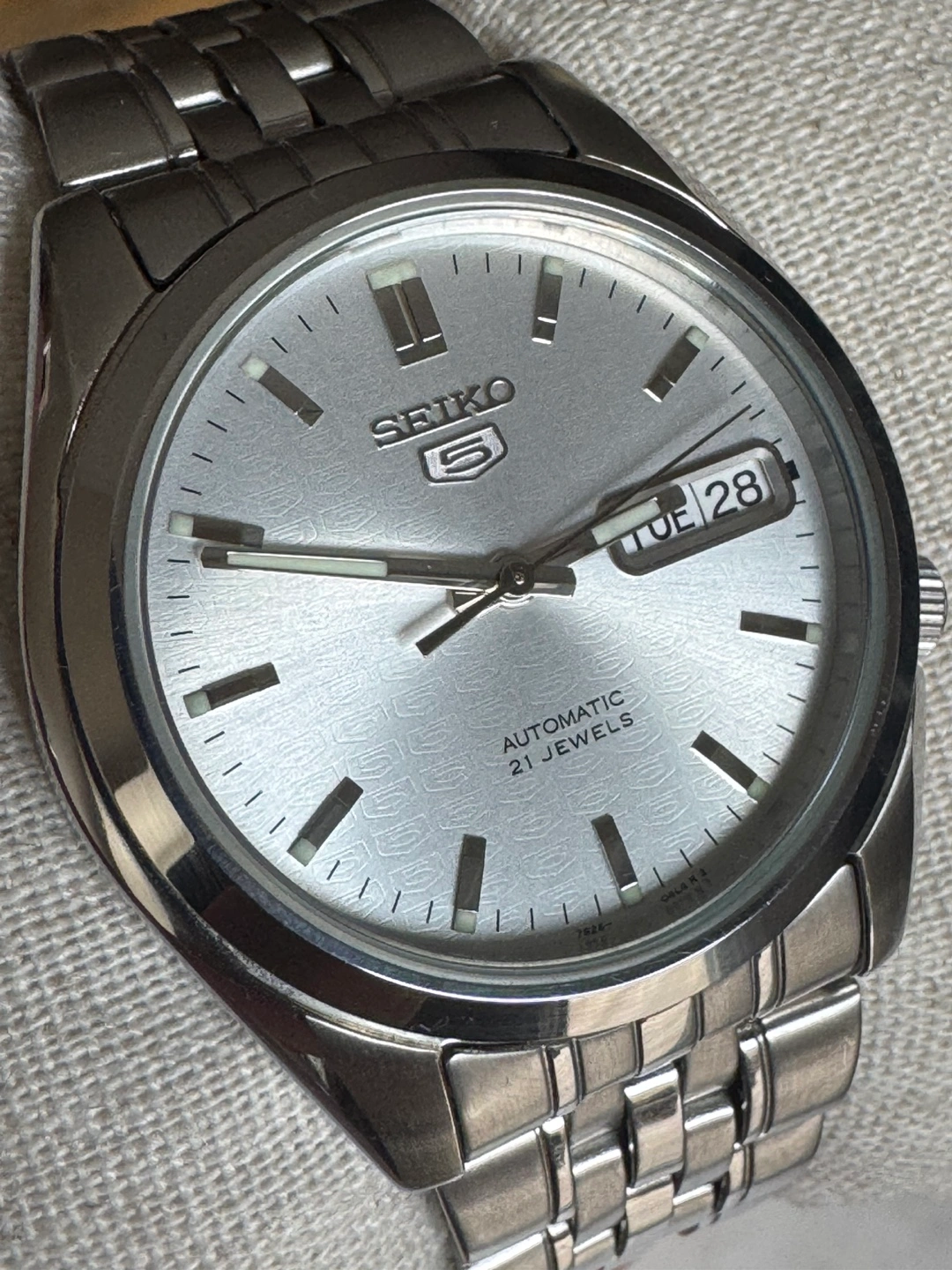 PLEASE READ DESCRIPTION FOR DETAILS AND SIZING BEFORE BUYING - Excellent condition, fully functional - Automatic - ref. SNK355 - Silver dial with repeating pattern - 37mm across case size Price is firm. Pickup in Markham any day, North York Monday/Tuesday. No holds without deposit, first come first served. If you like this watch, check out my other listings for similar watches! Buy multiple for a small discount