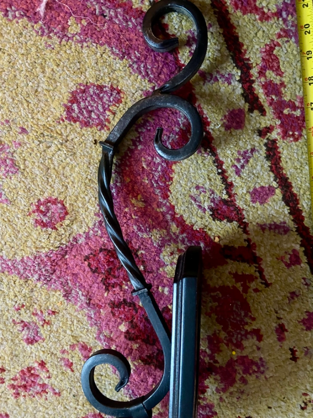 Set of two black metal wall candle holders with a scrolled design. Each holder measures approximately 21” inches tall.