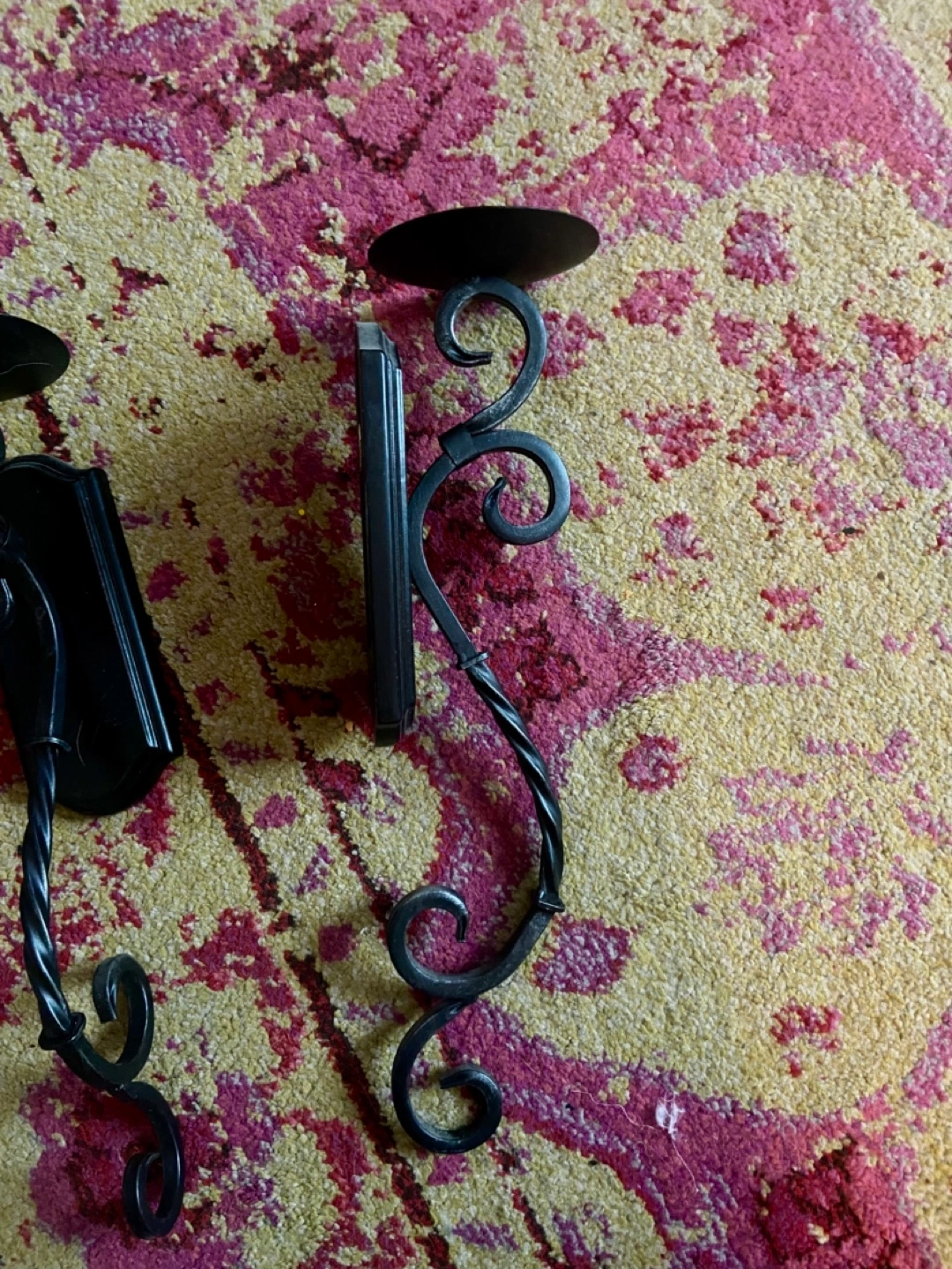 Spanish vintage Black Metal Wall Candle Holders