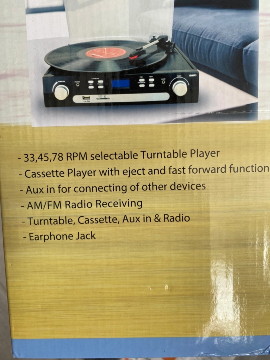 Record Player, Bluetooth, Radio, Cassette, Aux, MP3