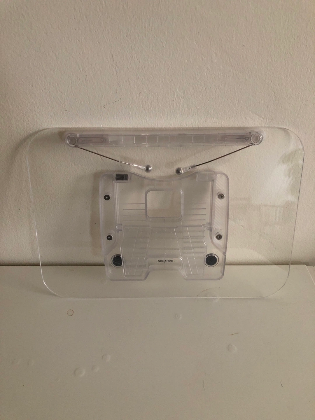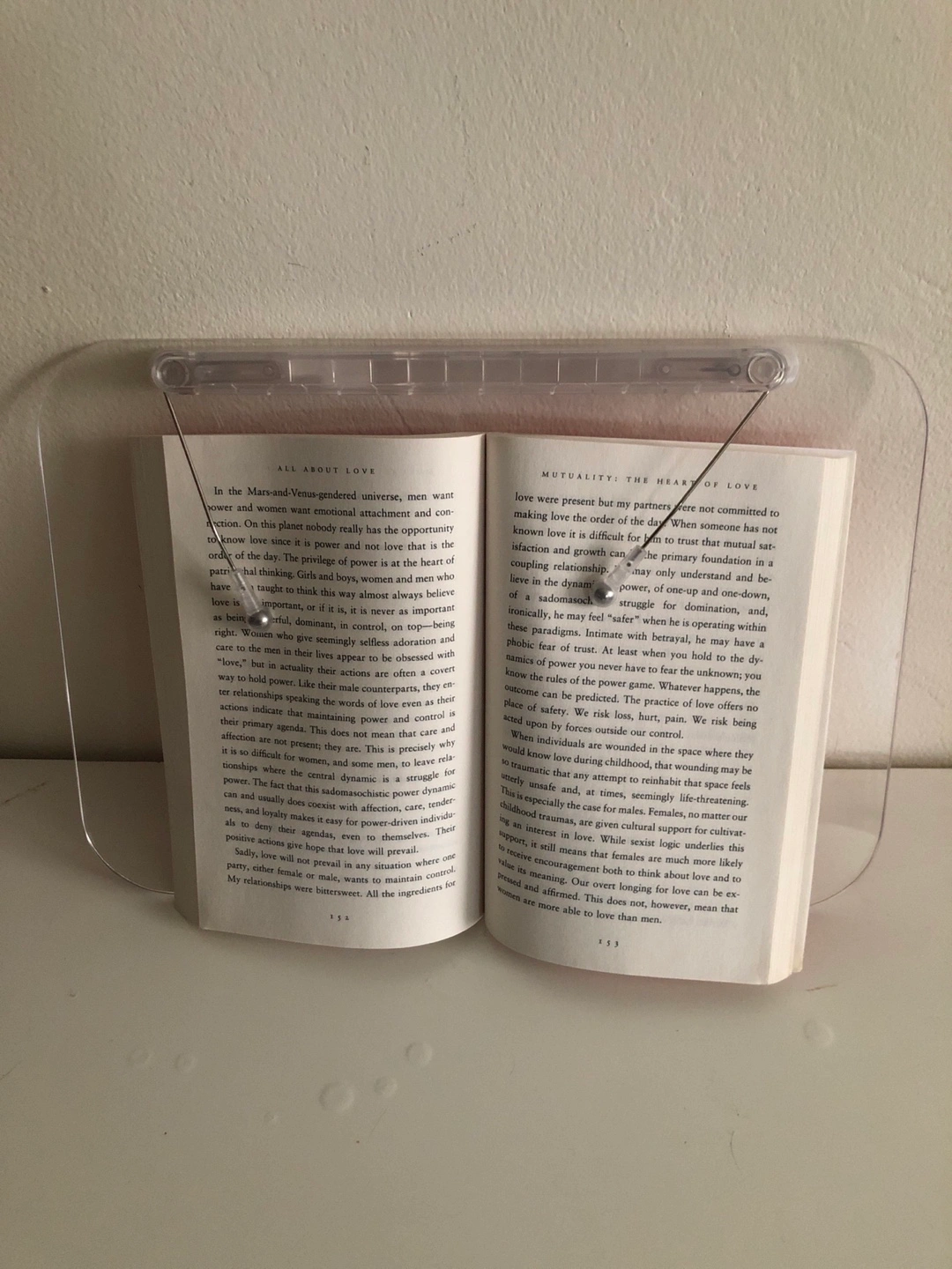 Clear acrylic book stand. Holds books open and upright. Adjustable to different book sizes.