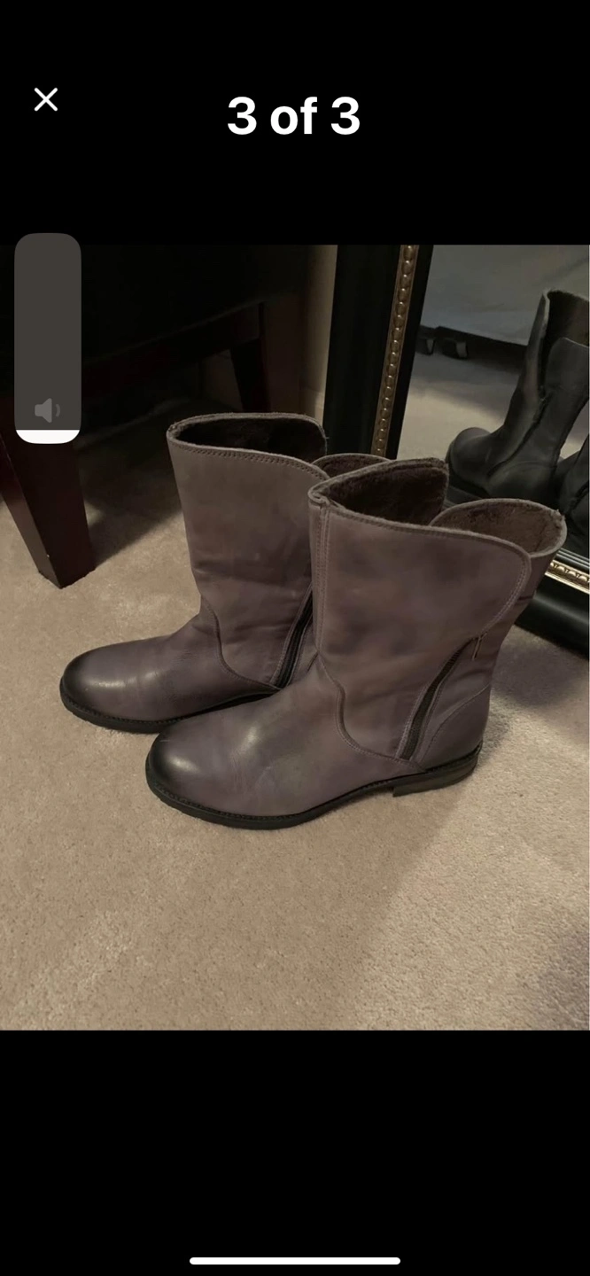 Buy & SellGrey Leather BootsGrey Leather Boots$60Grey leather boots with a side zipper. In mint condition no scrapes or marks .ConditionLike newSize9.5 BrandOkWHERE TO MEETCheck LocationView MapSELLERAdrianaBroadmead322 reviews0 chats·0 favorites·5 views