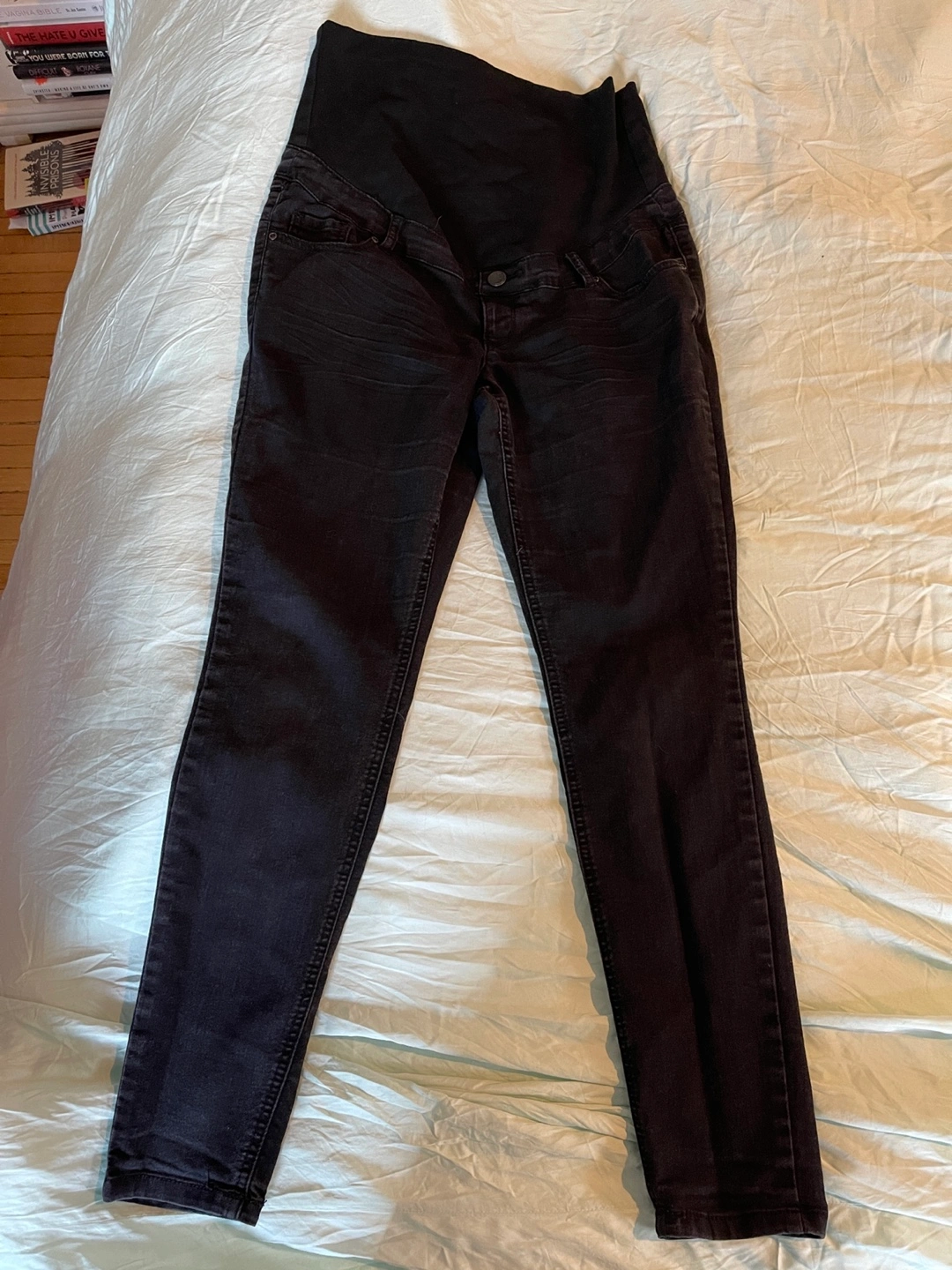 Thyme maternity black skinny jeans in size medium. Bought these and wore them twice before I got too big!