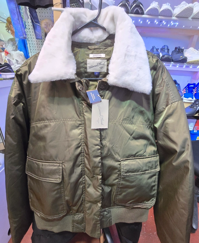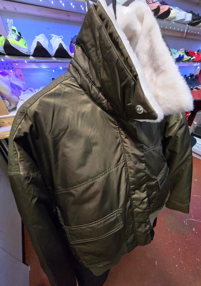 Brand new Green bomber jacket with a faux fur collar. Has two front pockets and a zipper closure.Size XL for sale $49 for more info contact me to