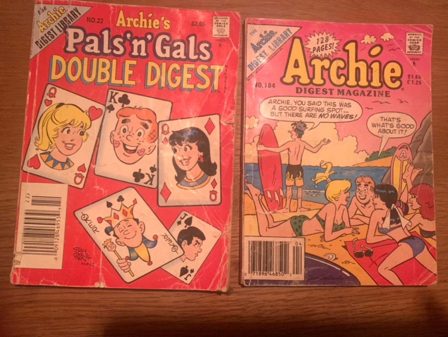 Two vintage Archie comic books, Pals'n'Gals Double Digest and Archie Digest Magazine. Both in very used condition but still tons of fun to read.